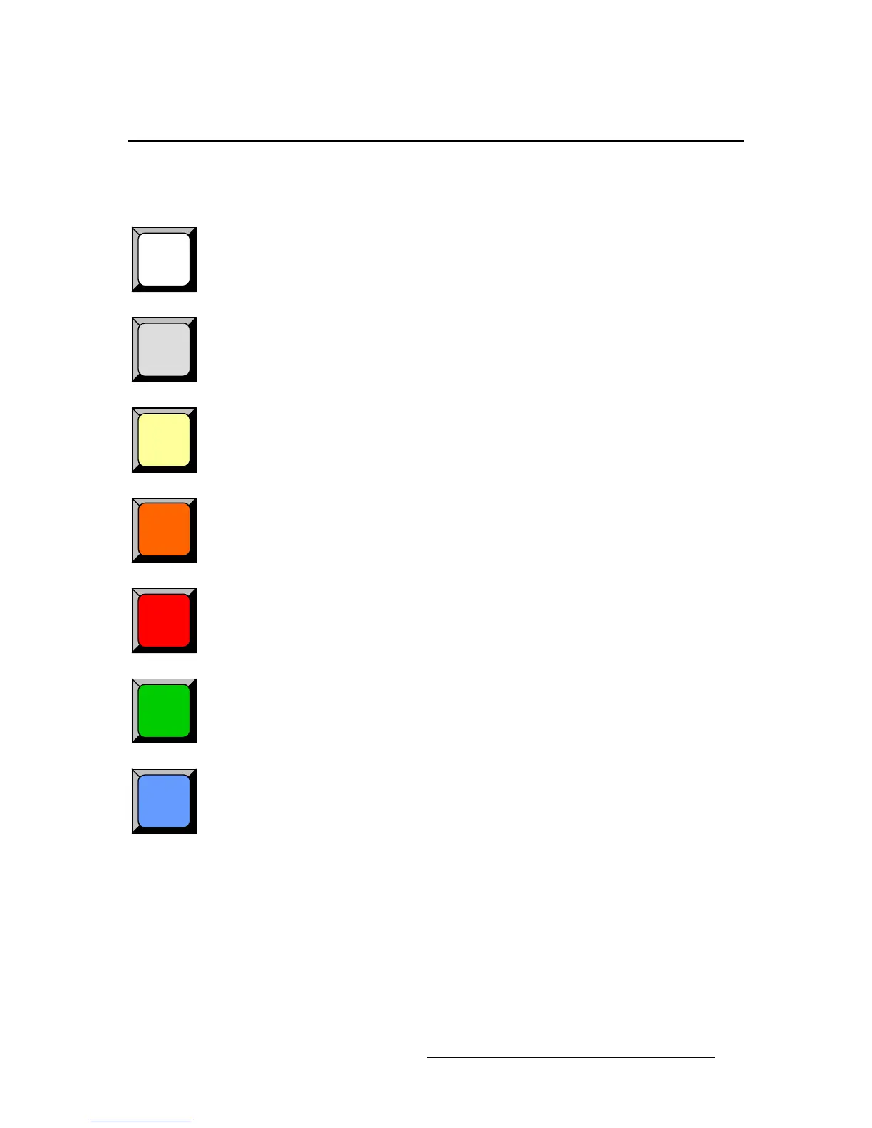 White buttons are used for sources, destinations, presets and user keys.