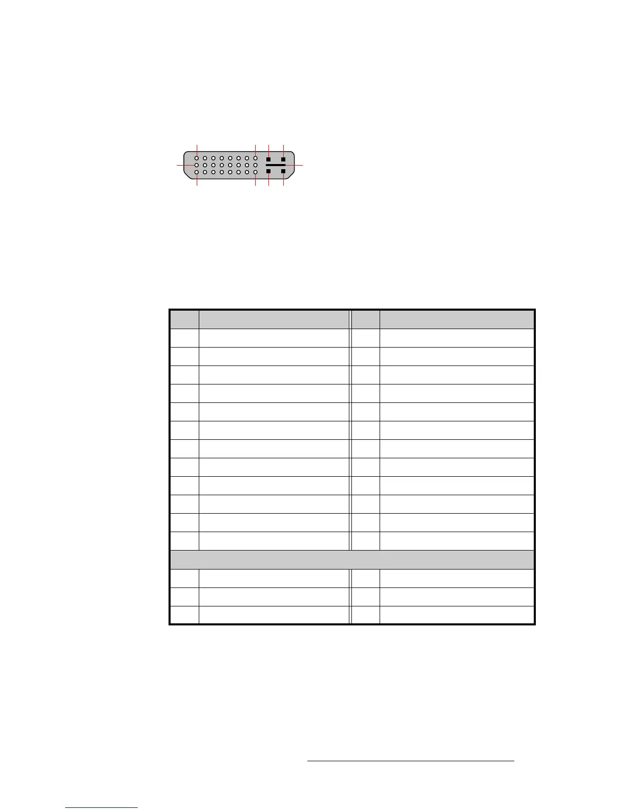 The table below lists DVI-I Connector pinouts. Please note: