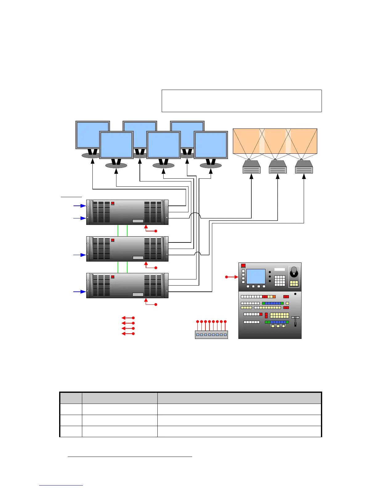 The figure below illustrates a block diagram of a “triple” wide screen configuration. Aux