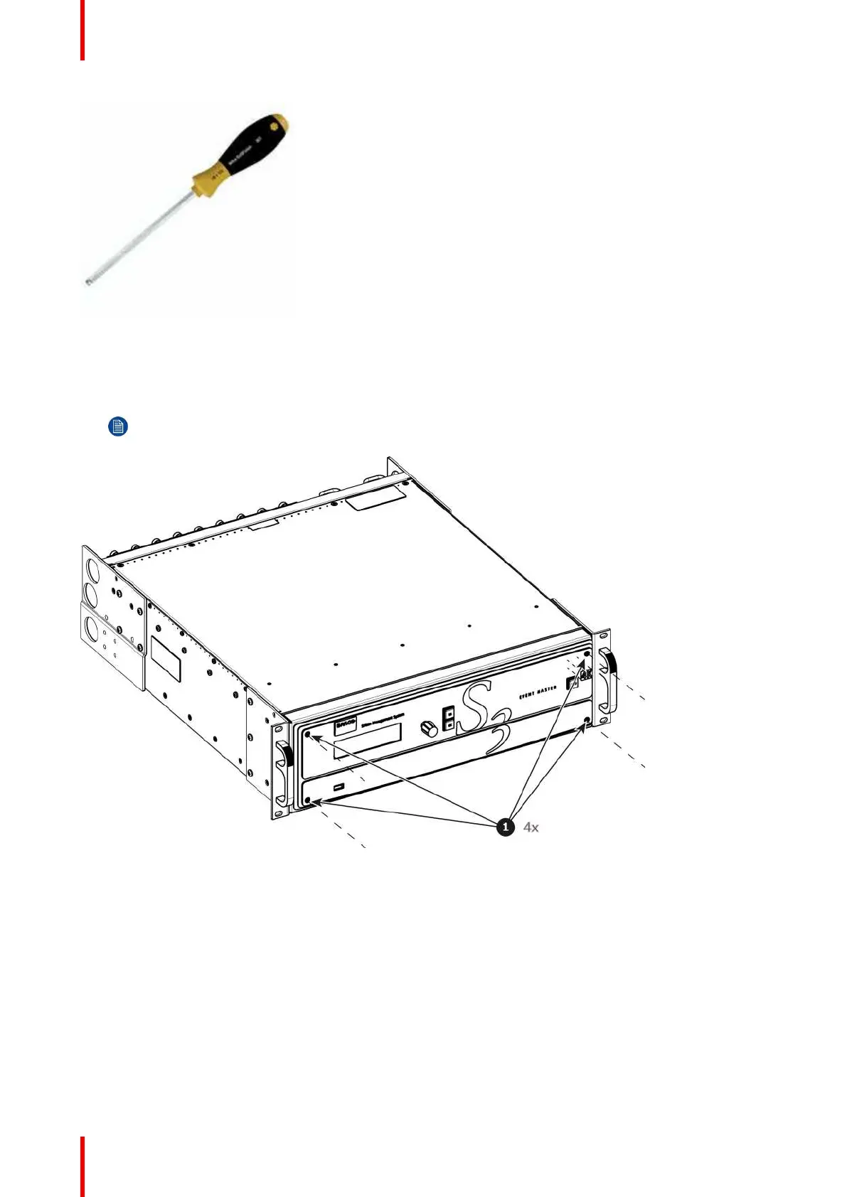 1. Use the Hex screwdriver to remove the 4 screws (Hex 6-32x.25) that attach the front cover to the brackets