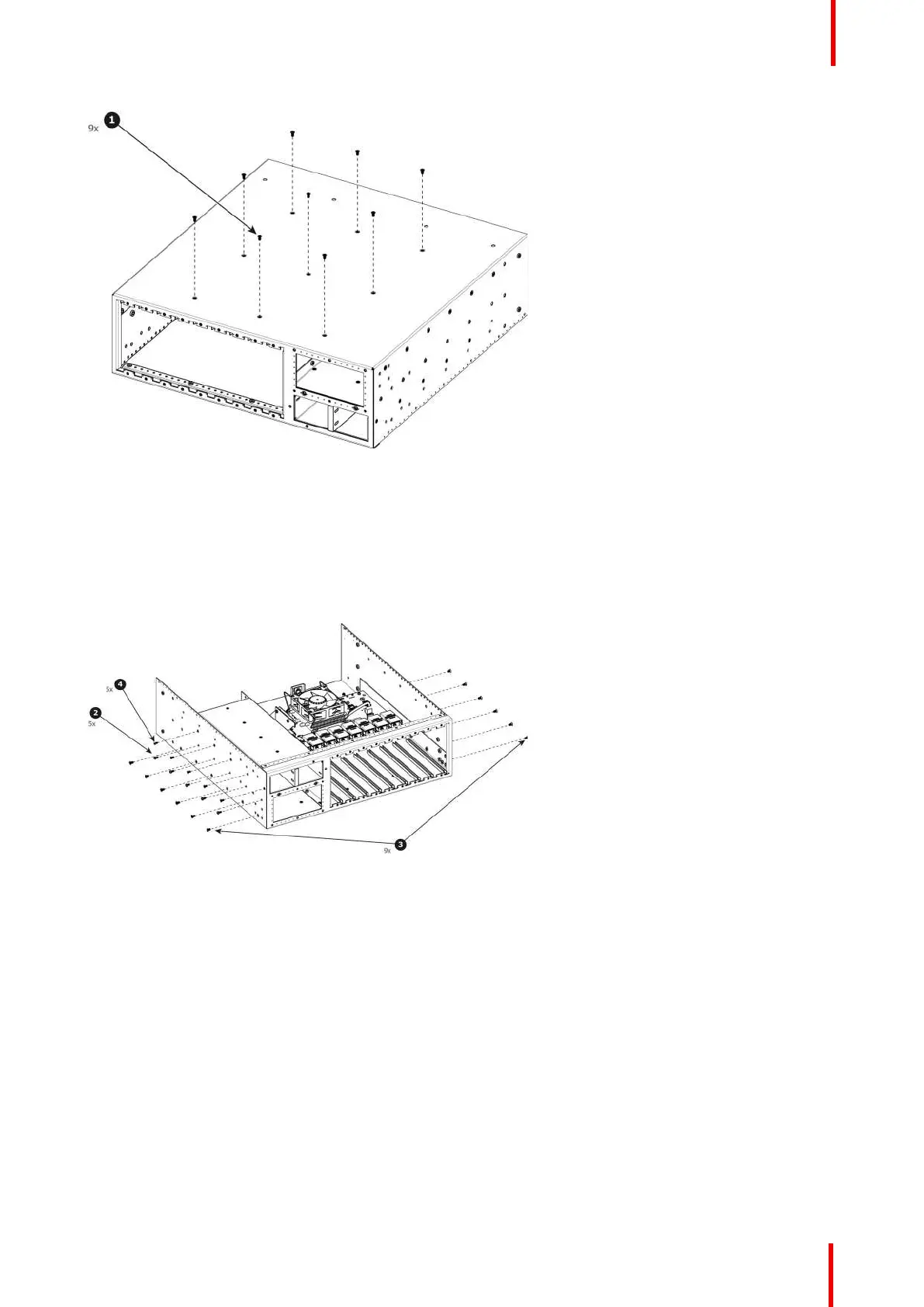 3. Remove the twelve flat head screws (6-32x0.25 — black) that attach the Motherboard Mount to the side of the