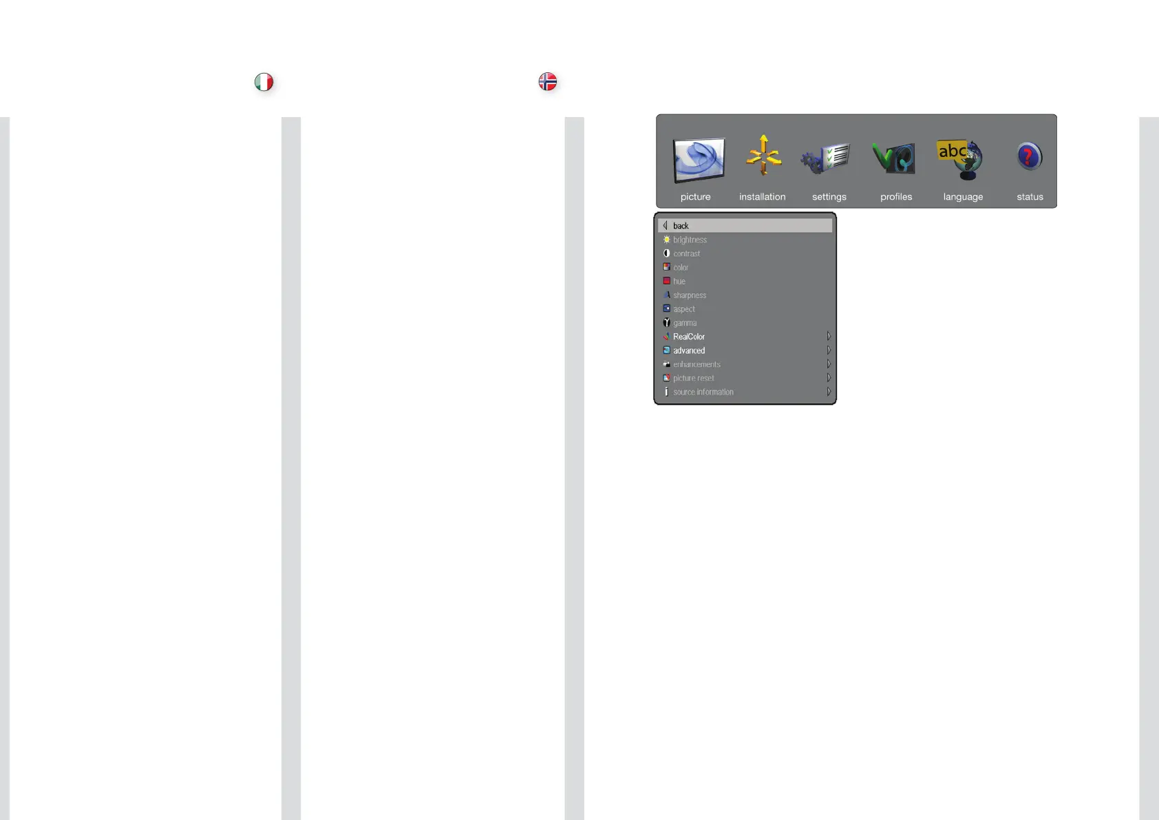 Il menu picture (immagine) contiene le regolazioni e le impostazioni