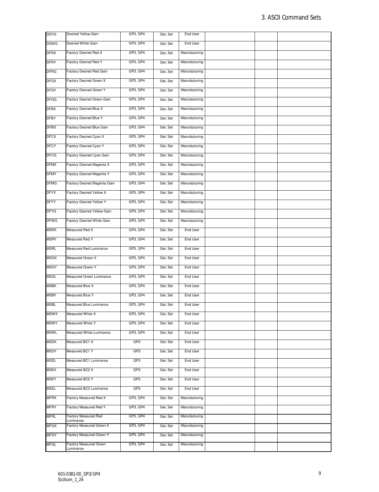 Measured Green Luminance GP3, GP4
