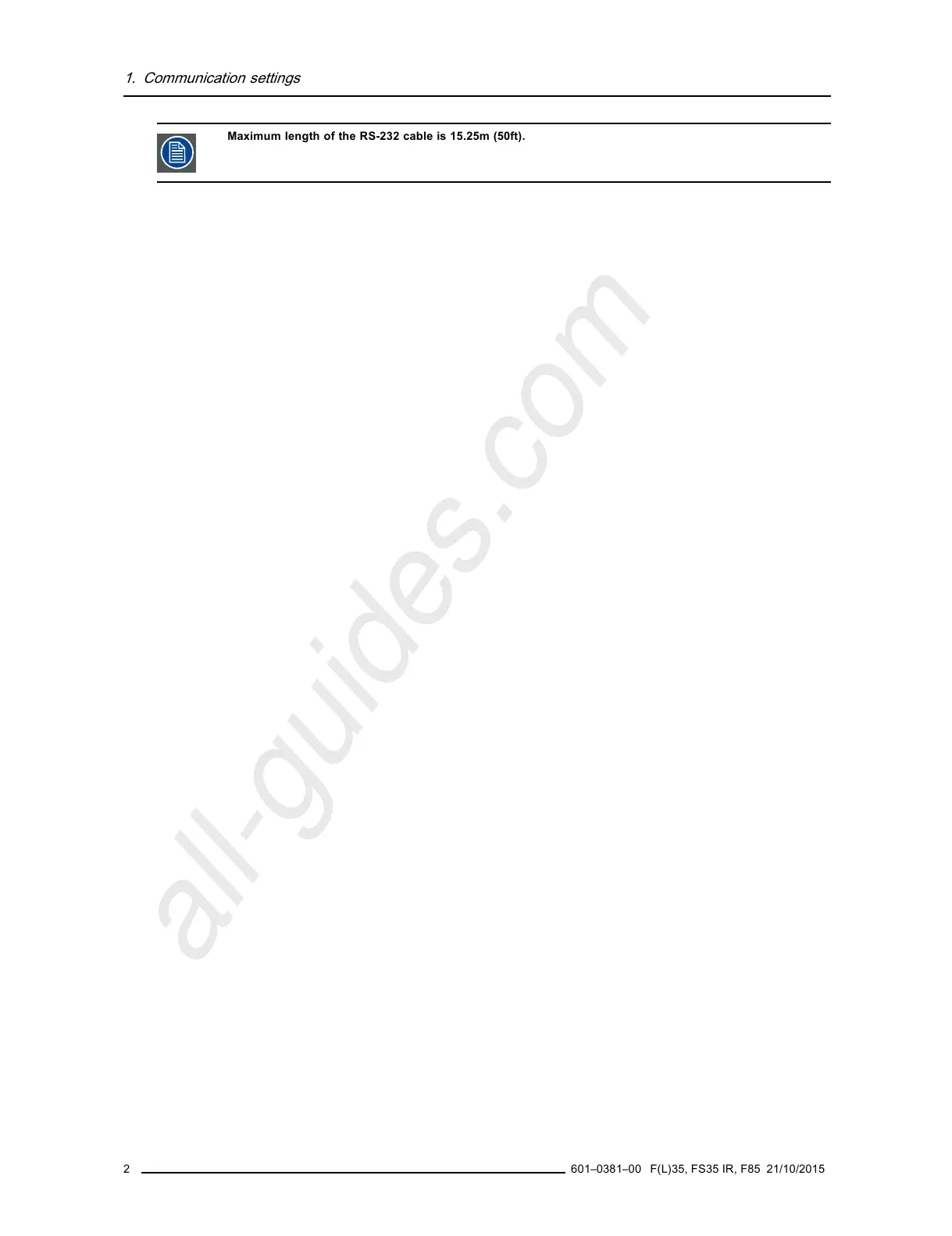 Maximum length o f the RS-232 cable is 15.25m (50ft).