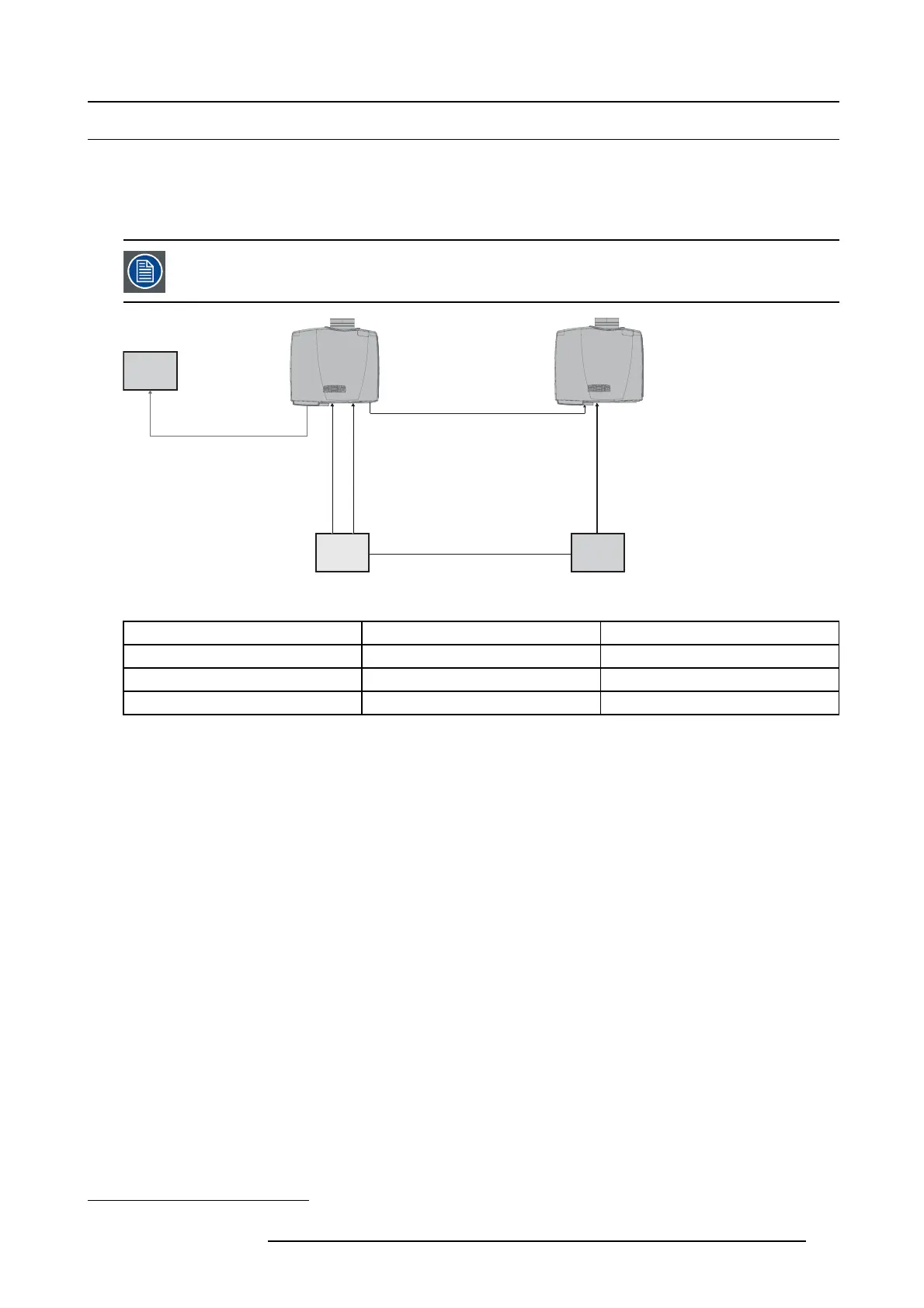 1 connec tor. This signal is then sent to the next projector in the setup out on the SYN C 2 connector. A t ypical synchronous fram e
