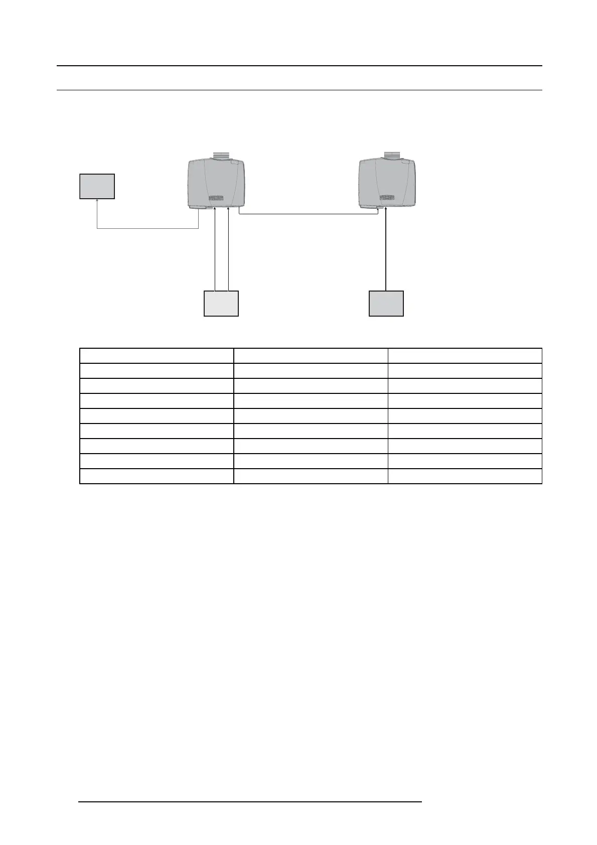 cable is connected between a SYNC connector on pro jector 1 and a S YNC connector on projector 2, as illustrated in image 12 -5 .