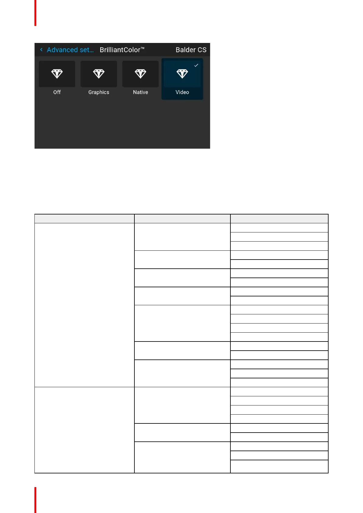 This menu is only valid for COLOR colorwheel in WQXGA@60Hz mode. For BRIGHT colorwheel, there are