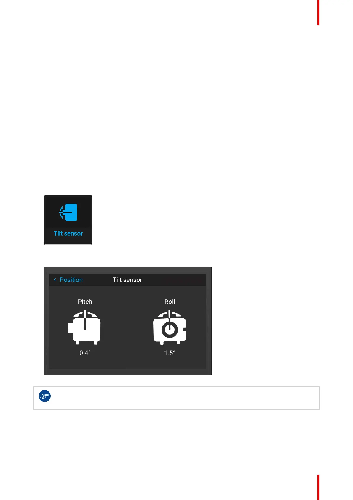 (e.g. perfectly level, or a perfect fit in a multi-projector setup), you can use the tilt sensor menu as an aide