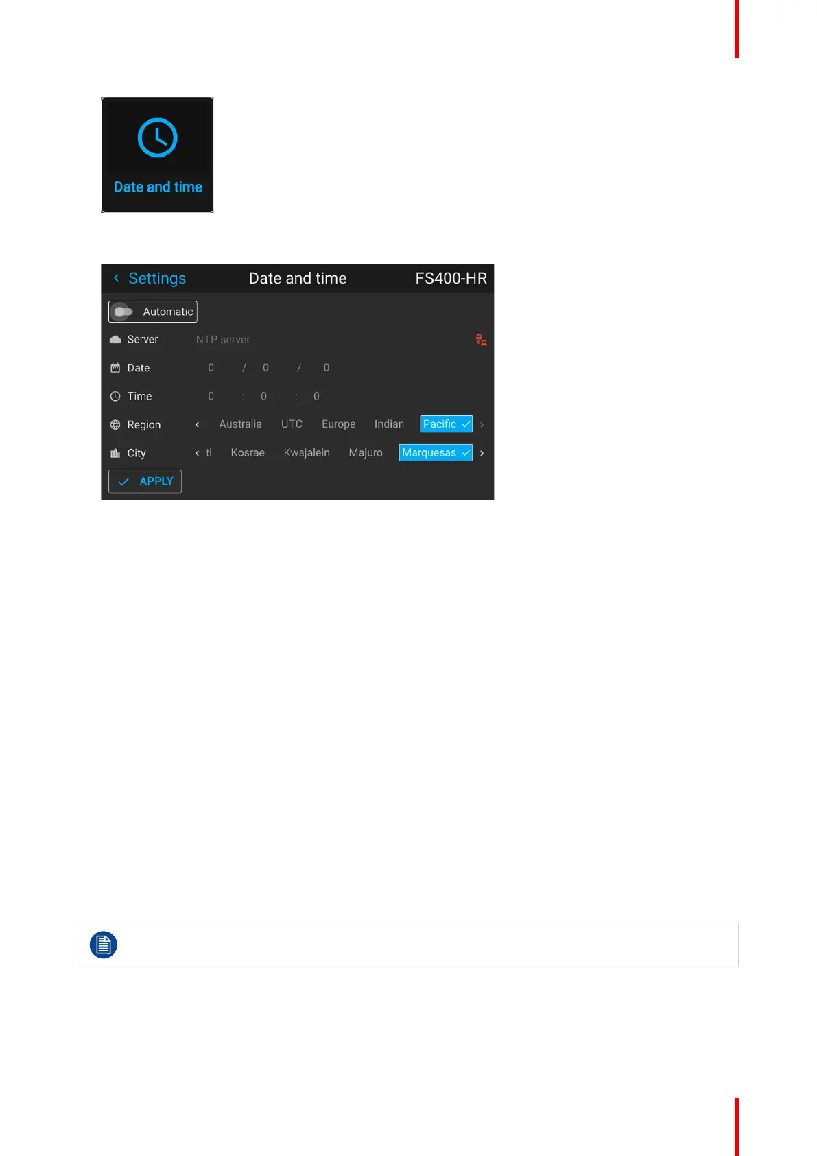 Alternatively, use the up, down and OK buttons on the RCU or control panel until the desired date is