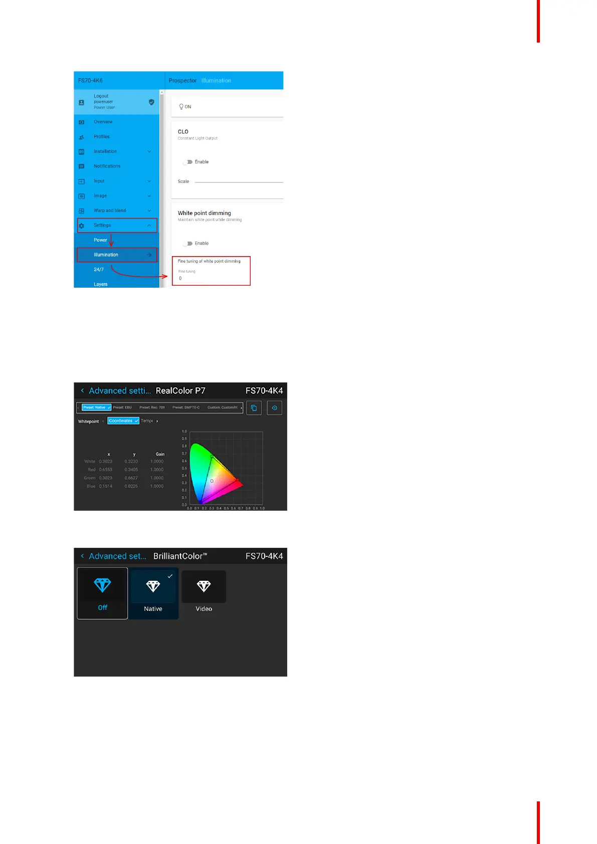 3. Select RealColor mode preset: Native. Menu -> Image -> Advanced settings -> Realcolor P7