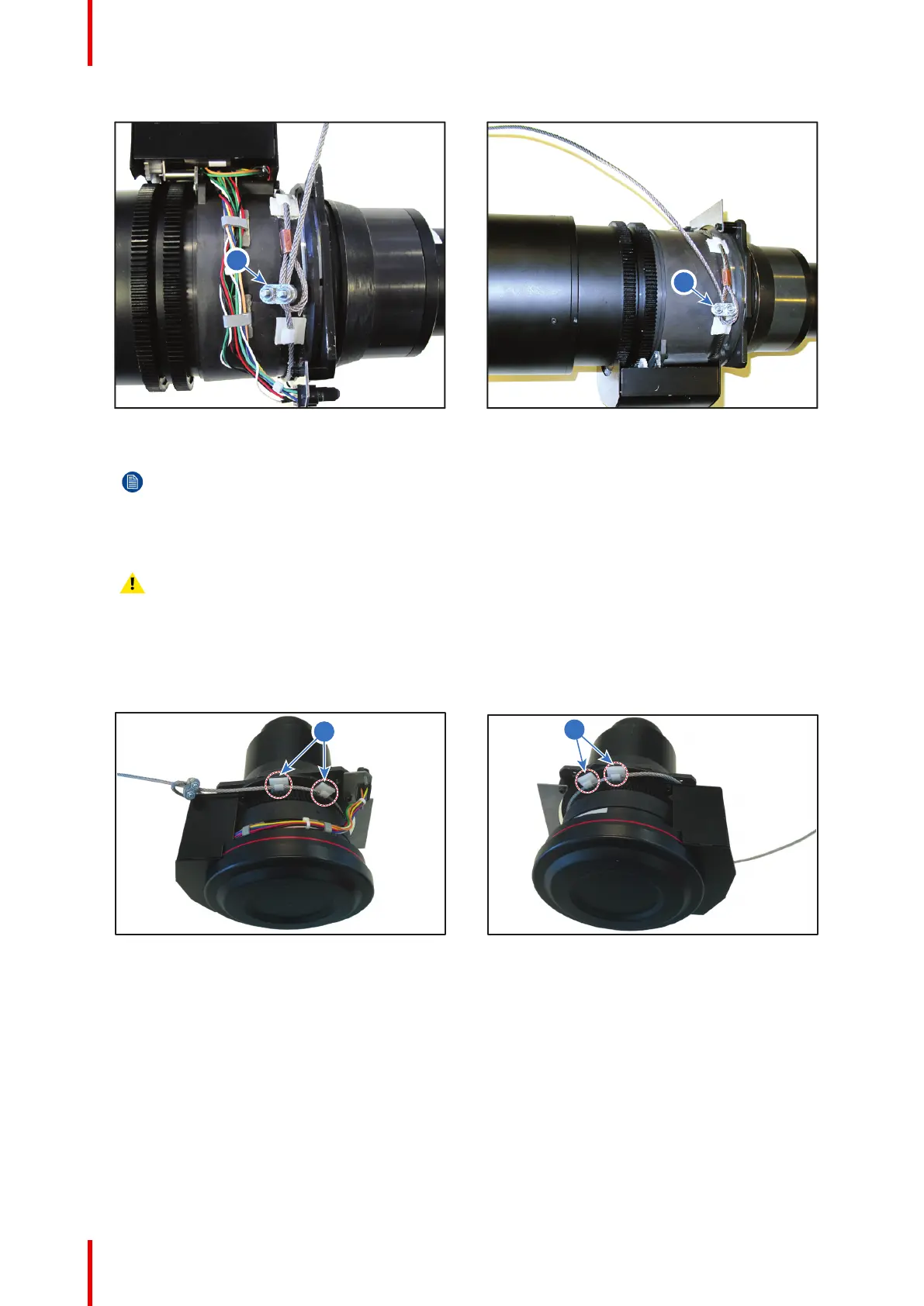 2. Paste two extra cable clips on the motor block of the lens. Orient the open side to the outside of the lens.