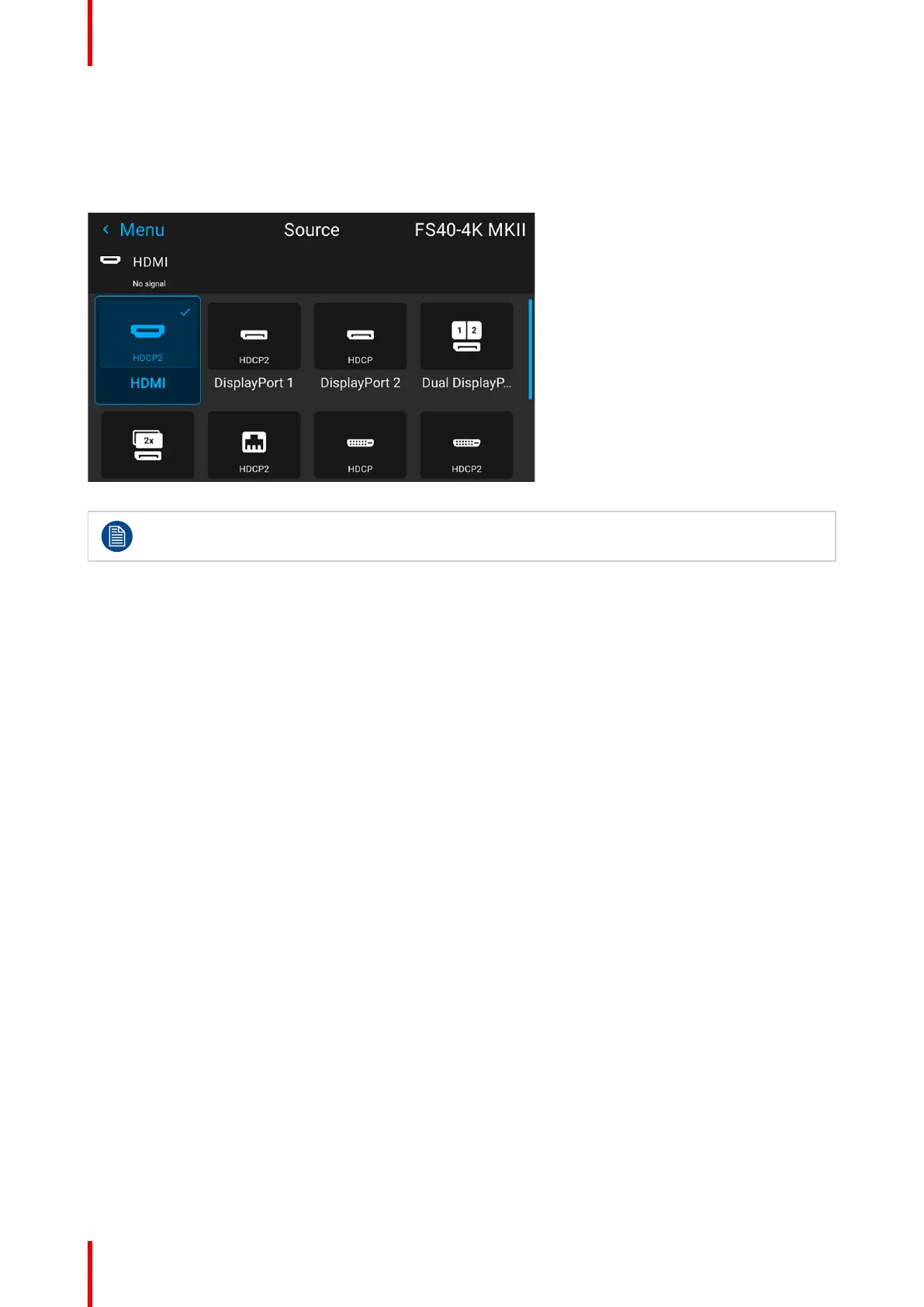 Observe that the HDCP compatibility for each input is noted in the input icon. See chapter 5.1