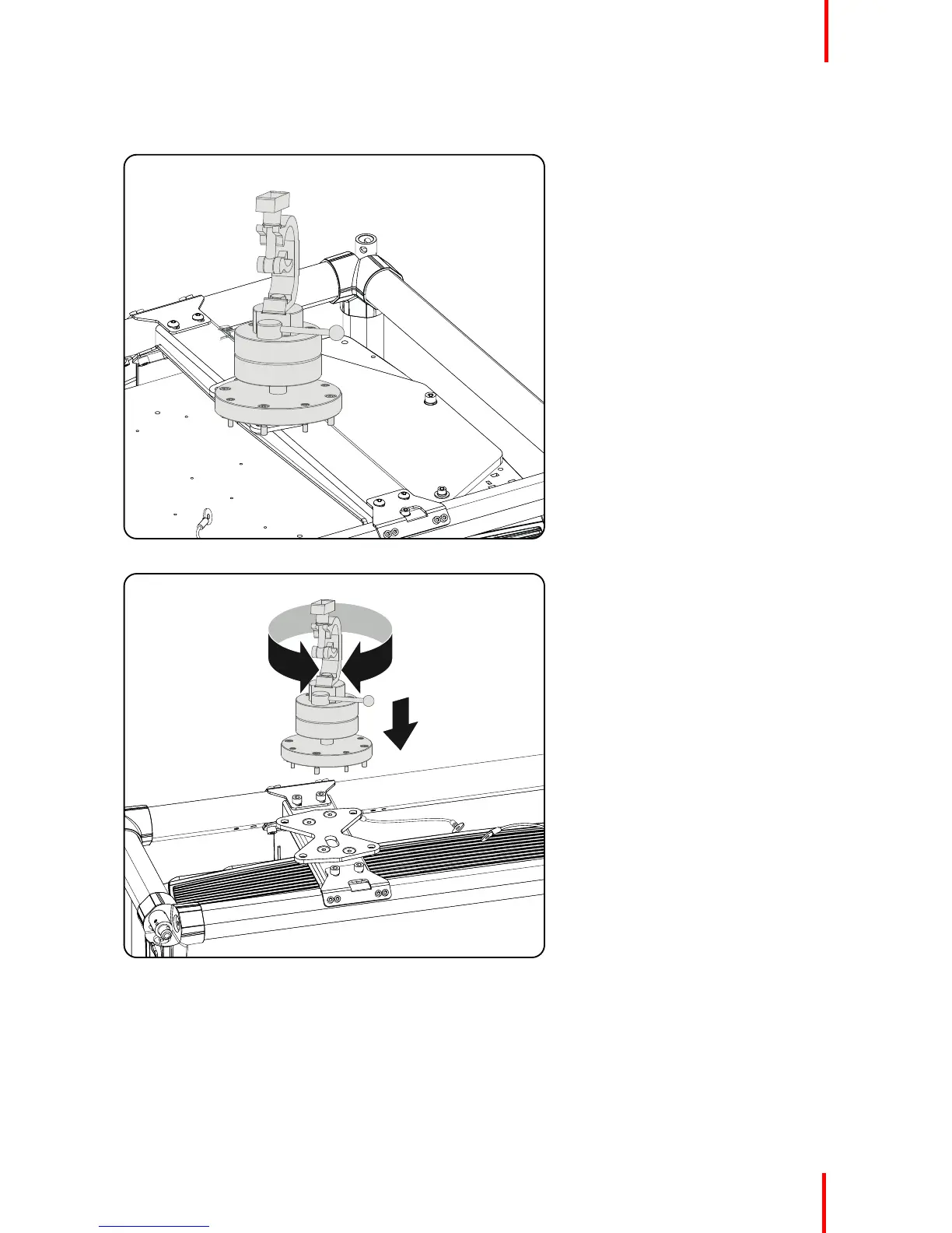2. Place the projector with the hanger under the truss installation and lower the truss until the support bars of the