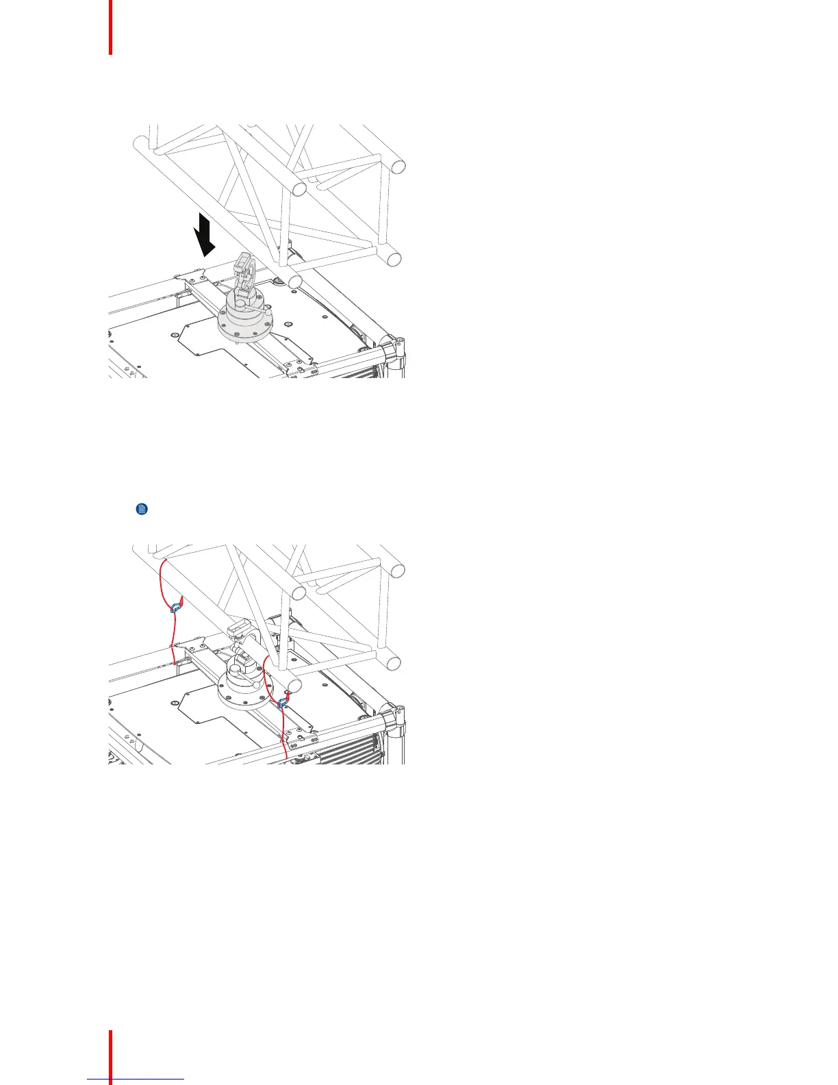 Note: Mount the 2 safety cables in such a way that when something goes wrong, the projector cannot