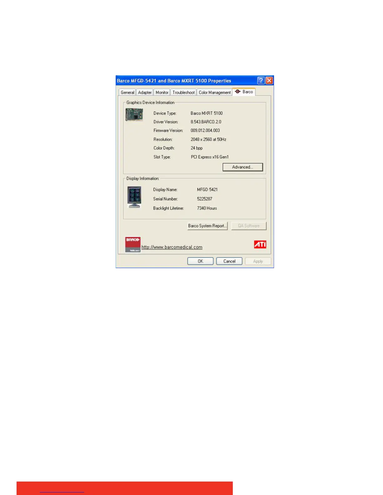 to two Barco tools, Barco System Report and MediCal QAWeb. Also, there
