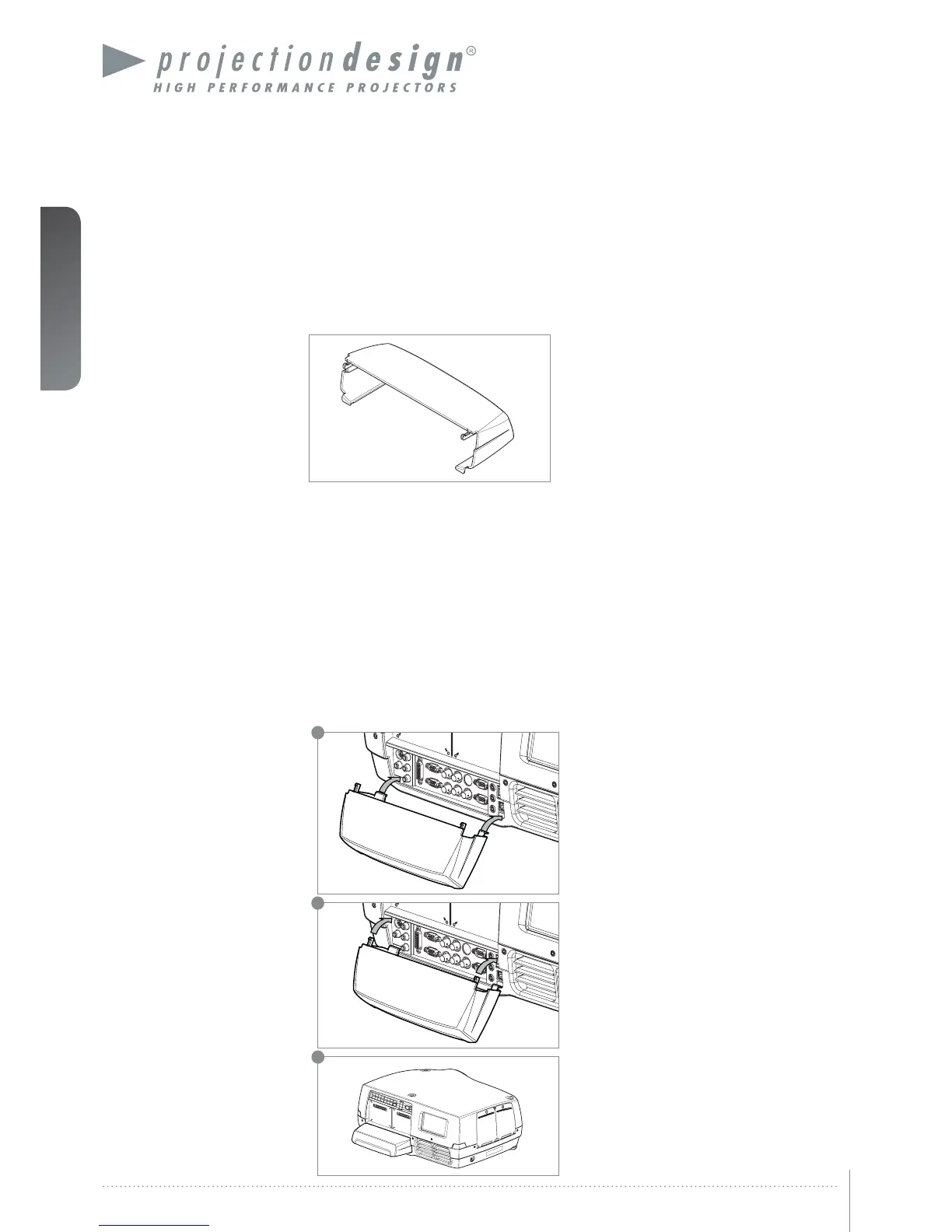 The optional auxiliary cable cover can be mounted on the projector to conceal the interface