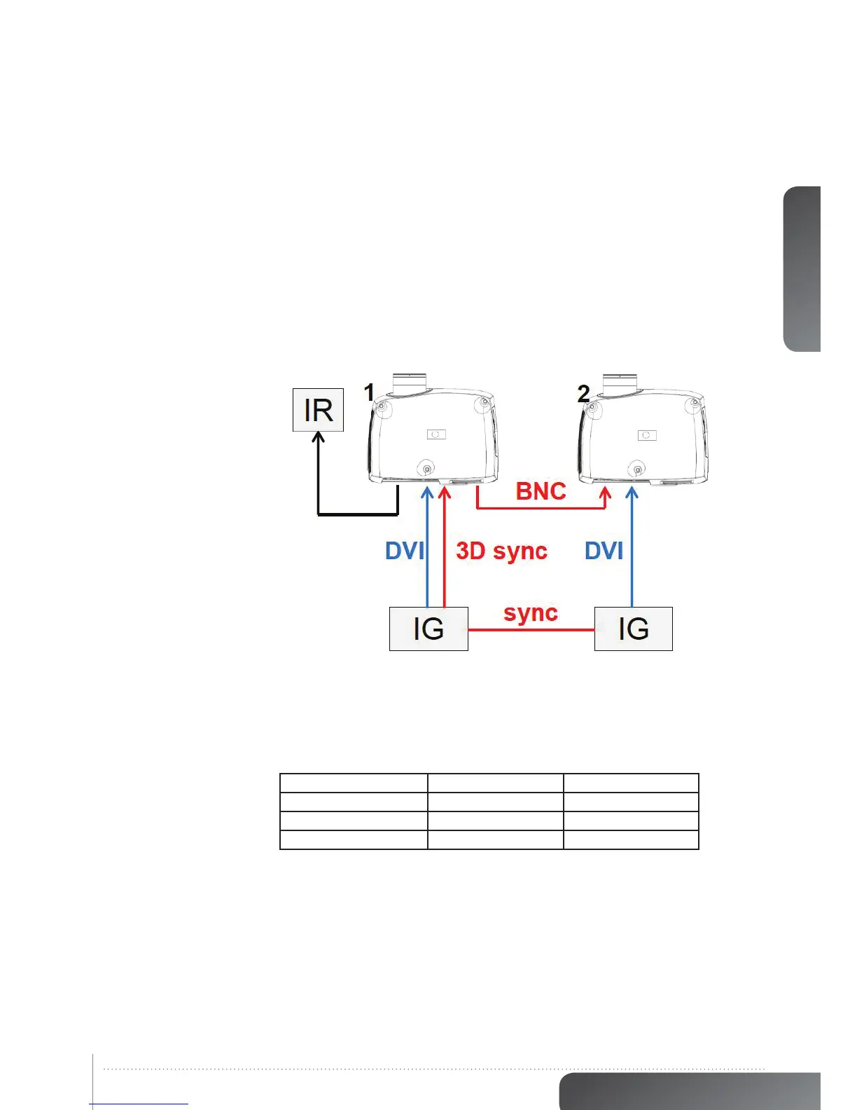 connector on the IG to the BNC sync-in connector. The source 3D sync is then sent to every