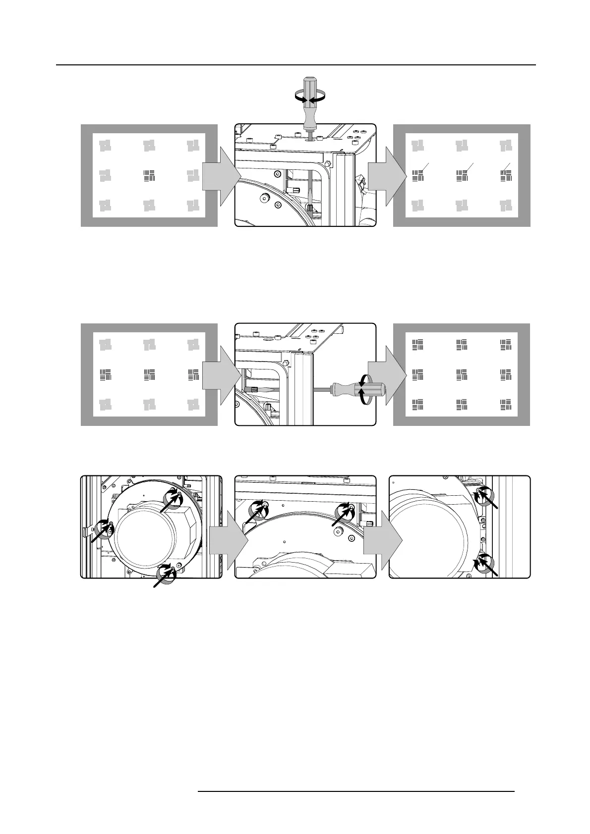 Note: A simultaneous readjustment of the focus shift plate will be necessary to get the mid top and mid bottom of the projected