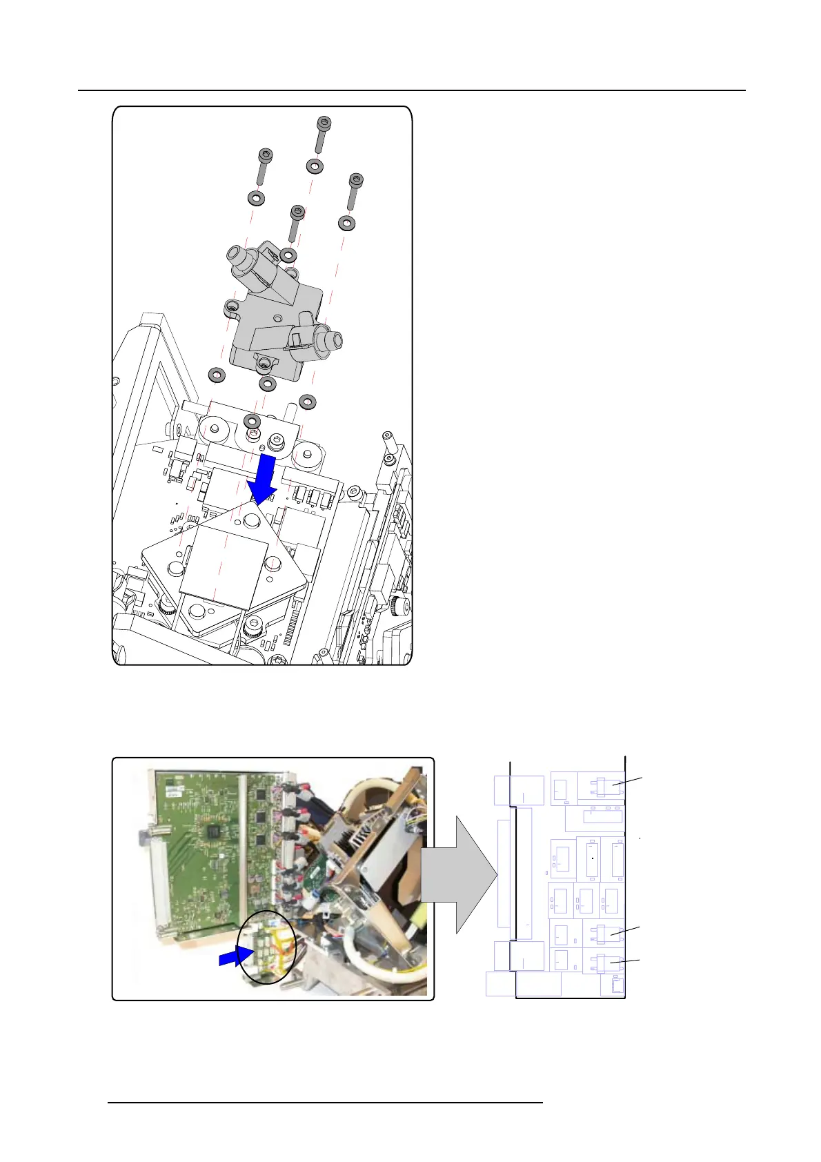 5. Connect the Peltier to the FIB unit. Guide wires next to cable tree and secure with cable ties or guide the wires in the cable tree