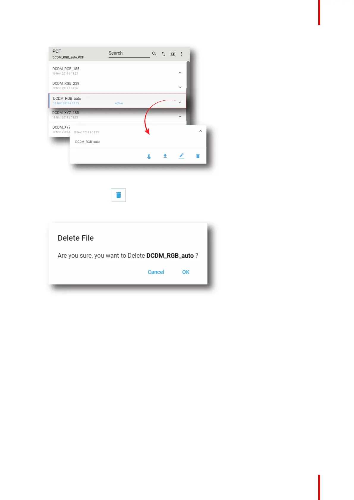 (reference 2) located at right of the PCF files in order to select/deselect the PCF files you want to delete.