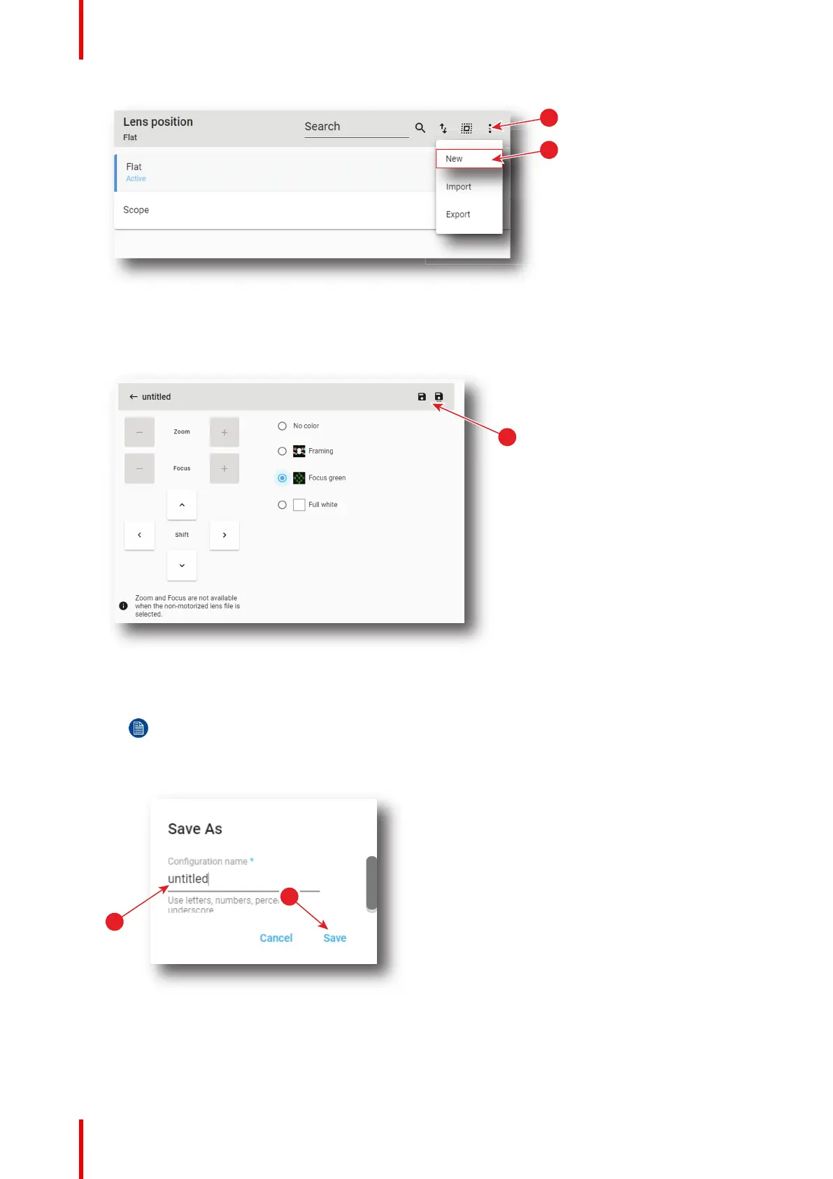 Note: Zoom and Focus are not available when the non-motorized lens file is selected.