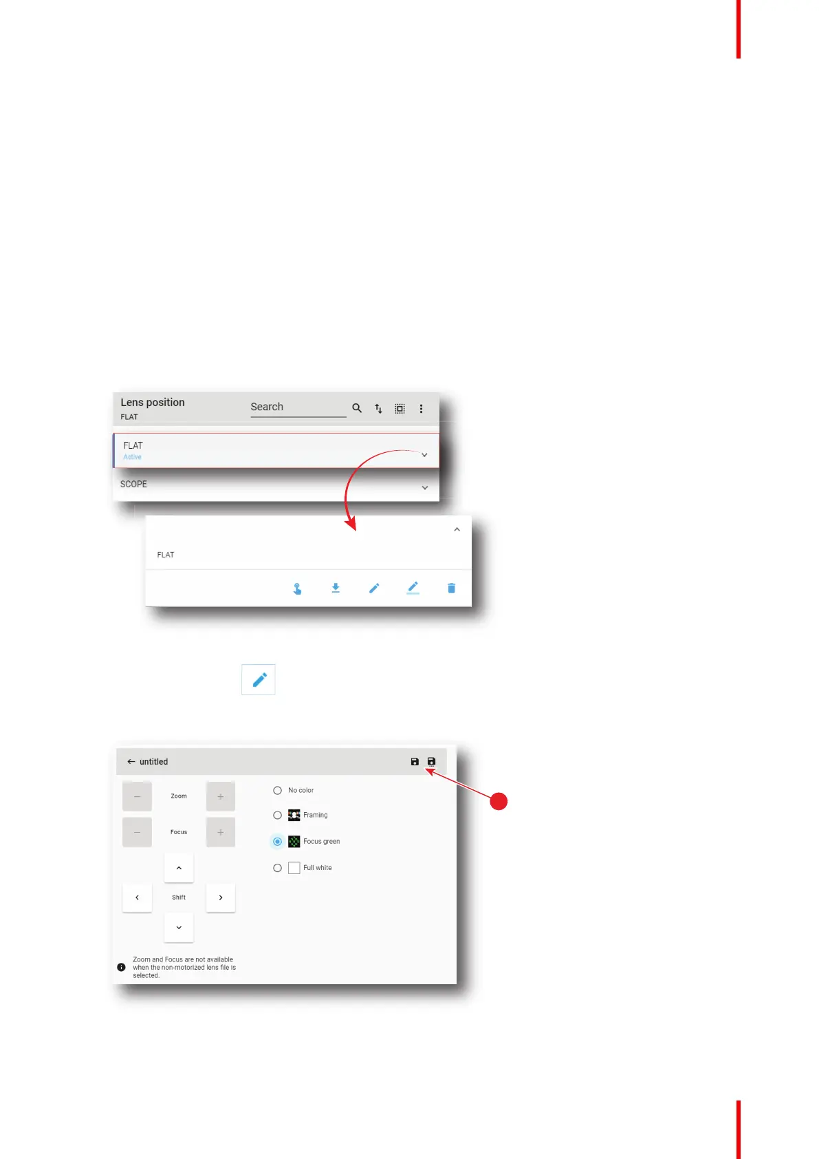 1. While in Configuration > Projector > Lens position, find and click on the lens position file you want to