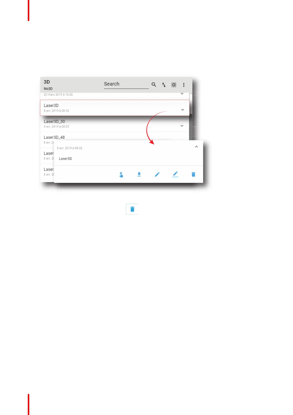 2) located at right of the 3D files in order to select/deselect the files you want to delete.