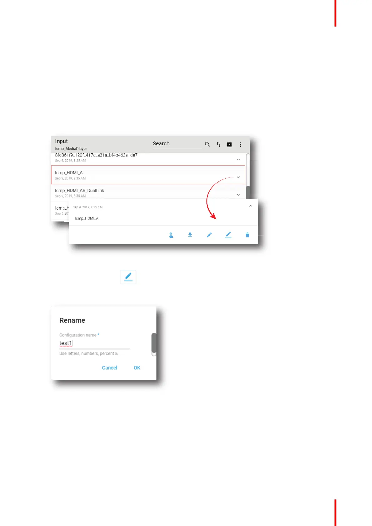 1. While in Configuration > Projector > Input, find and click on the input file you want to rename.