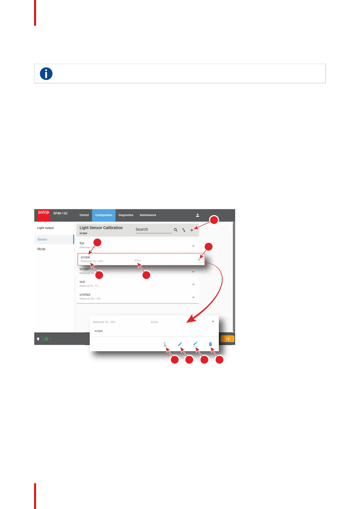 • Activate (reference 5) allows to calibrate the light output with the values defined in the sensor calibration