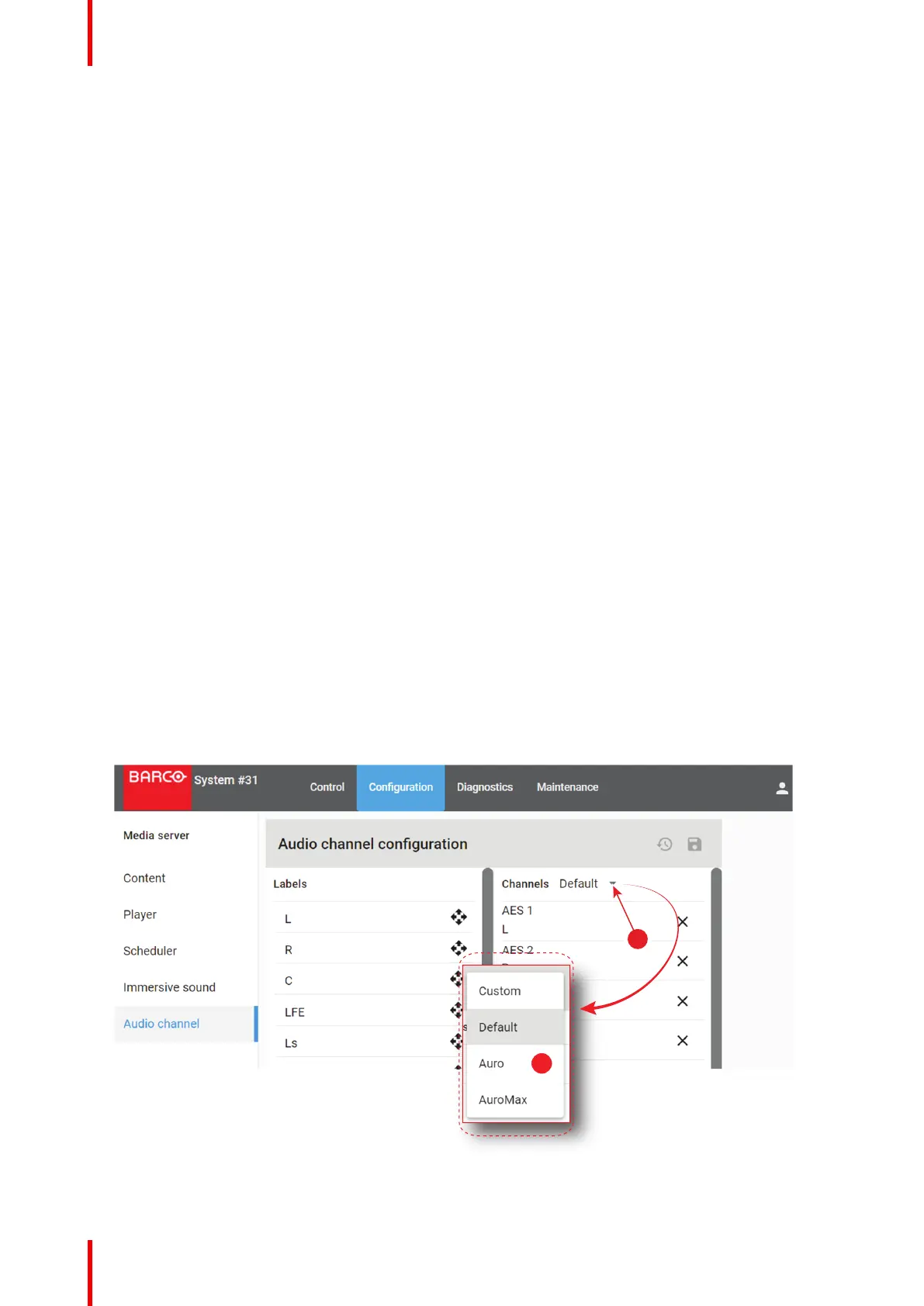 1. While in Configuration > Media sever > Audio channel, select the channel standard by clicking on the drop