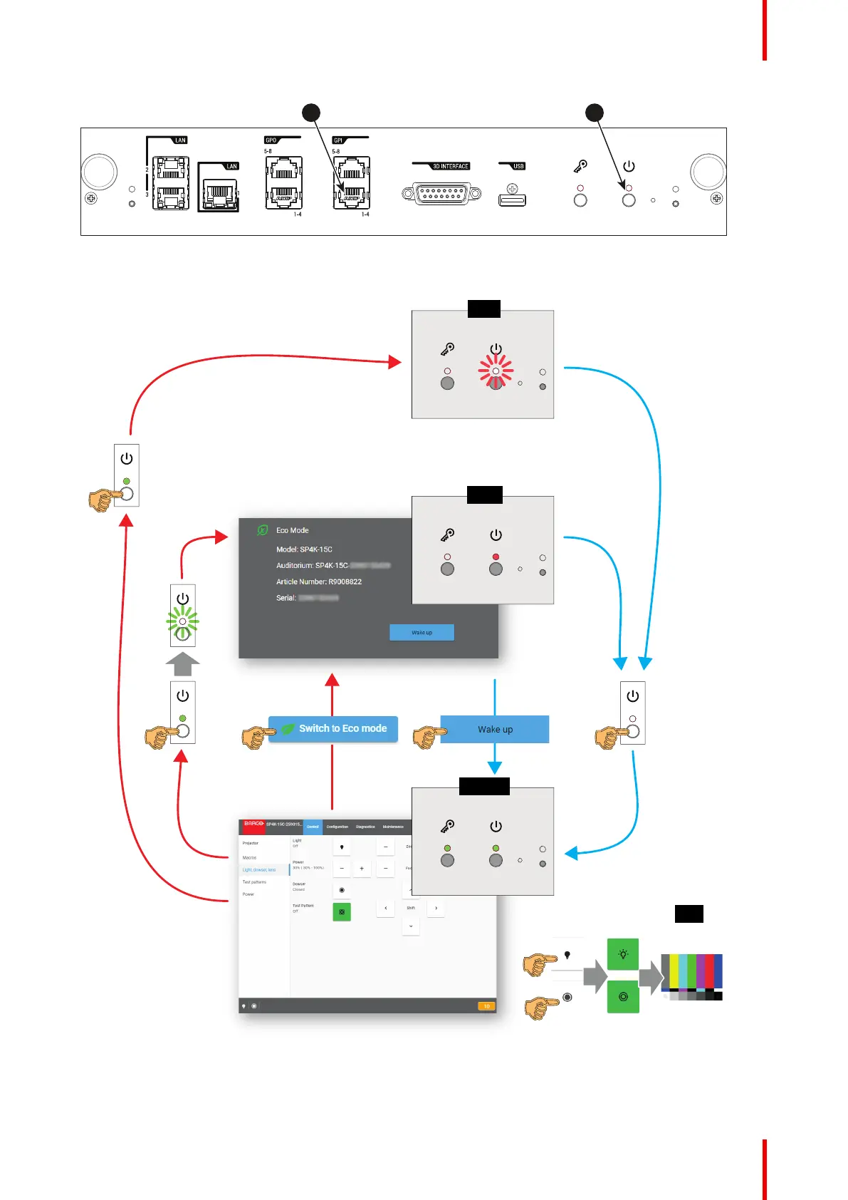 Image 22 Location of the Power button and GPI 1-4 input on the Cinema Controller.