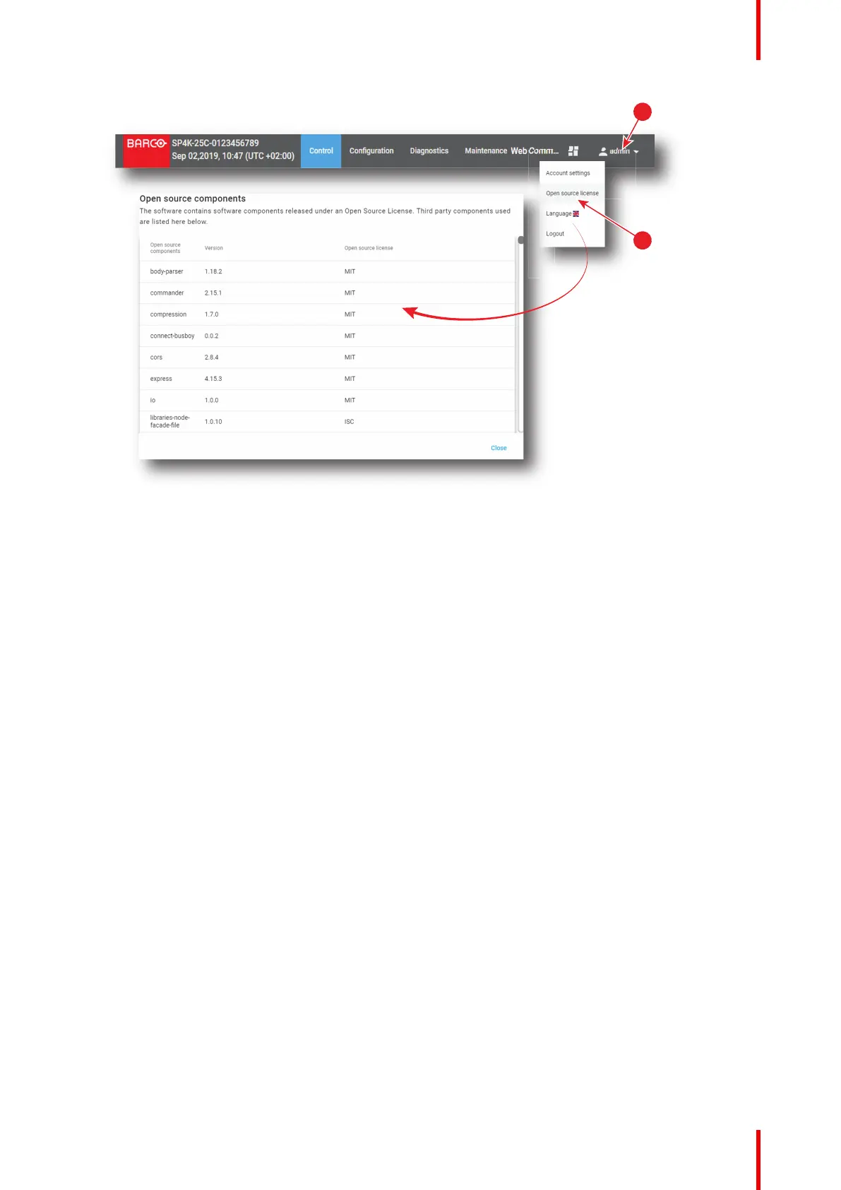 2. Click Open source license (reference 2).