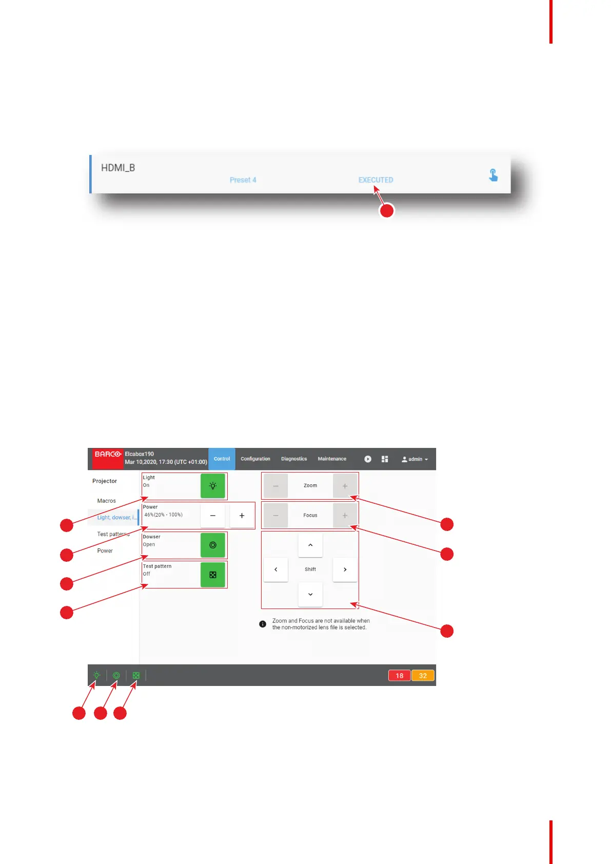Image 6–4 Control > Projector > Light, Dowser, Lens