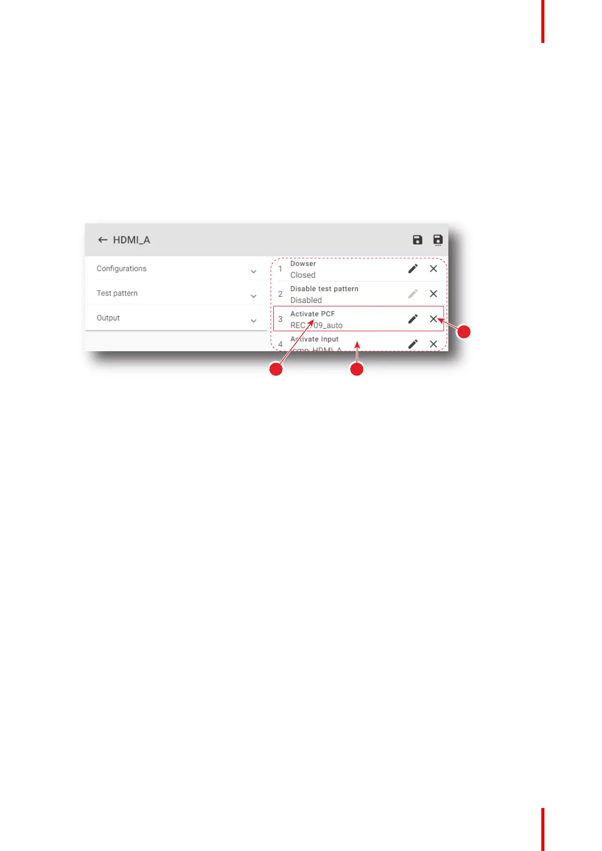 1. While in Macro editor, locate the element you want to remove (reference 1) from the list of commands