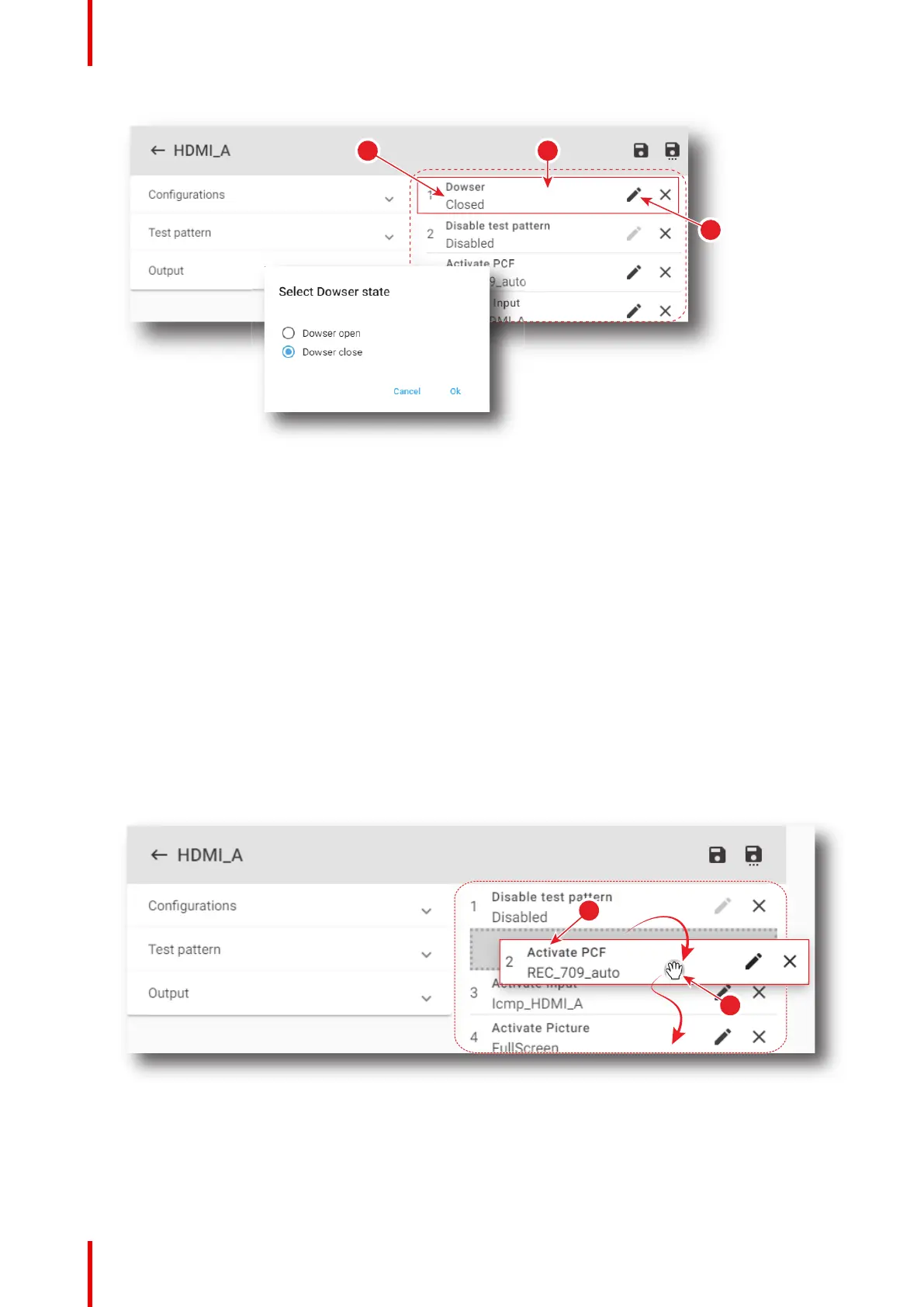 Order of the commands in the list may be modified by a simple displacement of elements using the mouse.