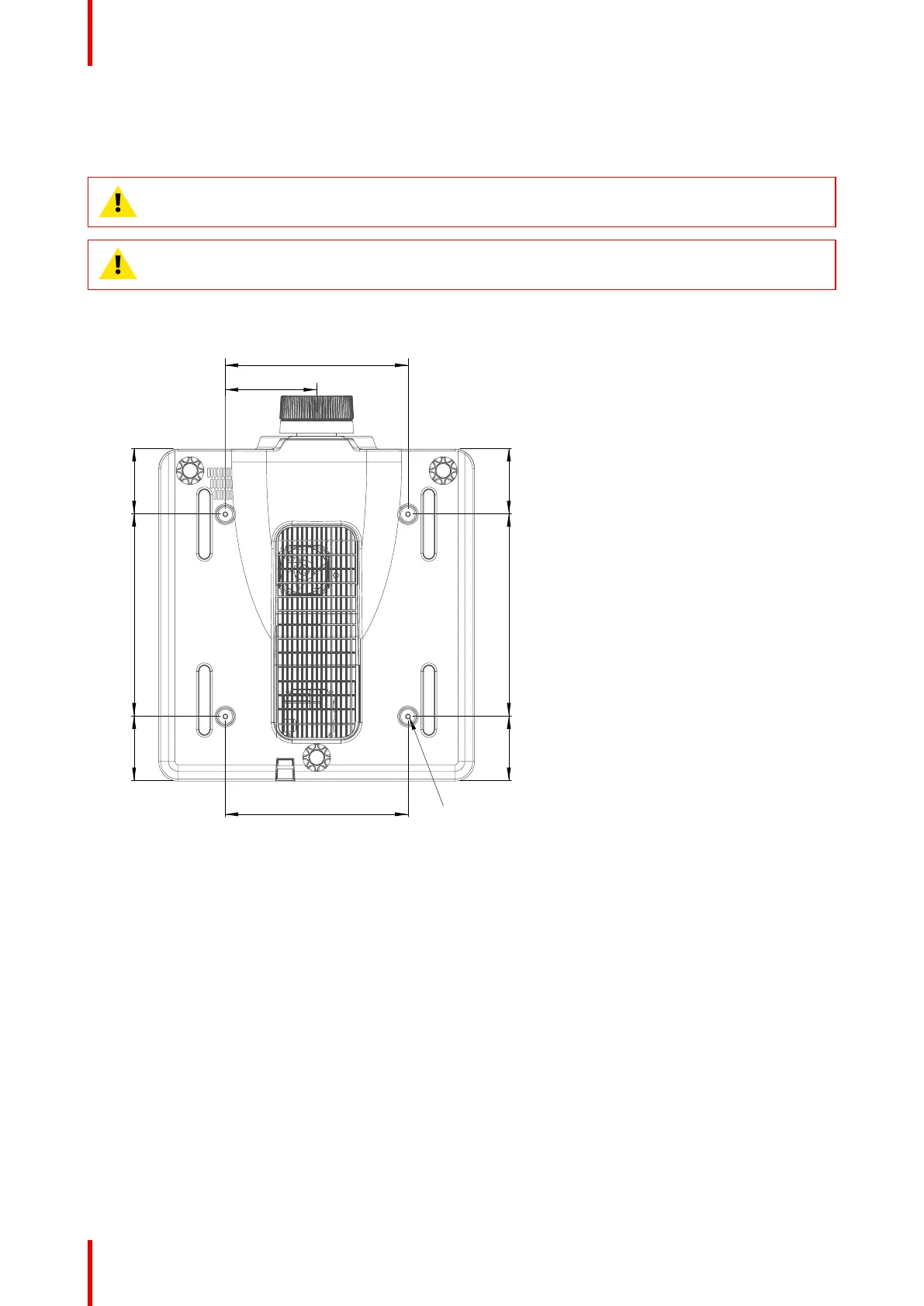 CAUTION: Be sure to keep at least 30 mm gap between the ceiling and the bottom of the projector.