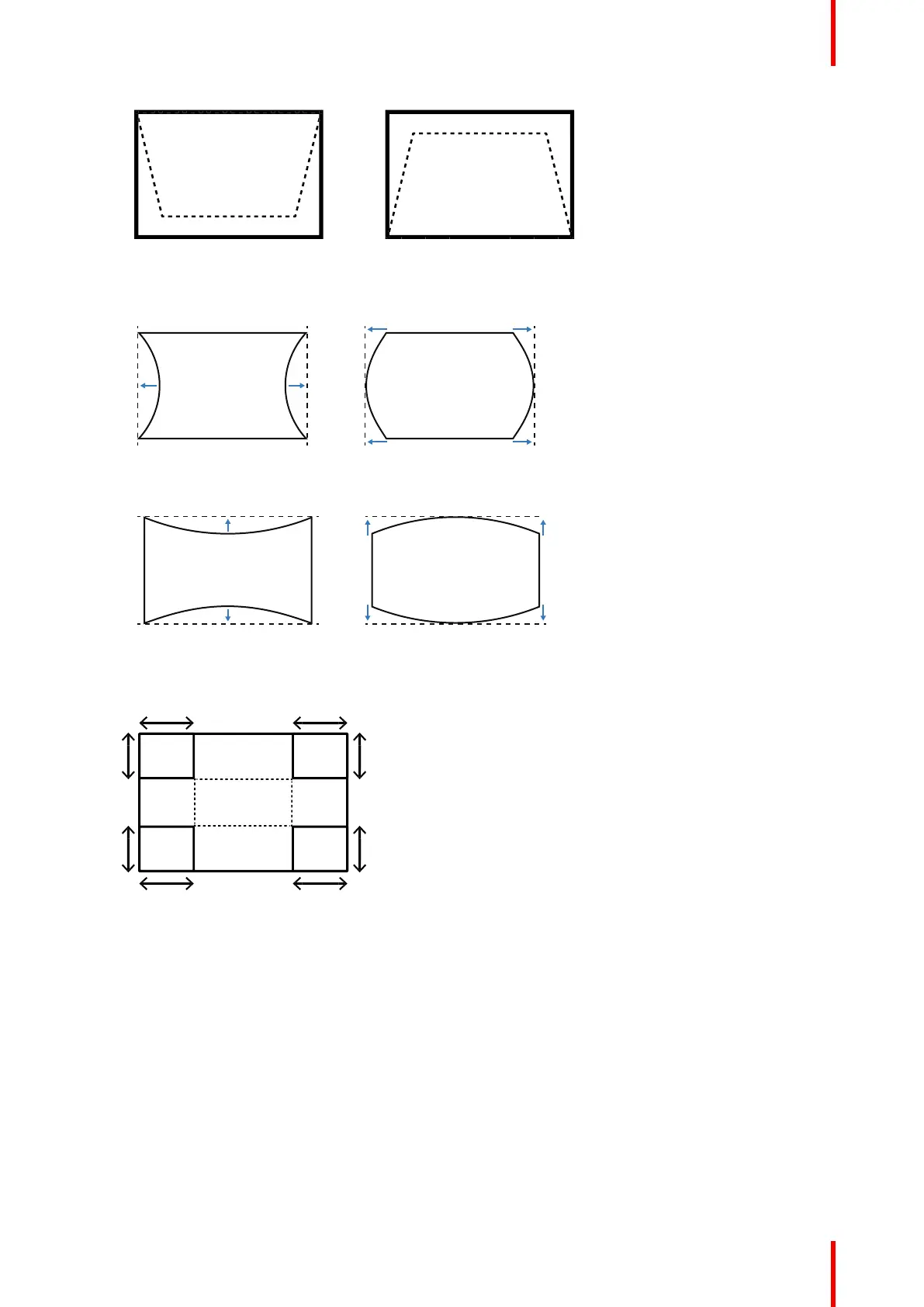 - Vertical: Correct the projected image with vertical barrel or pincushion distortion.