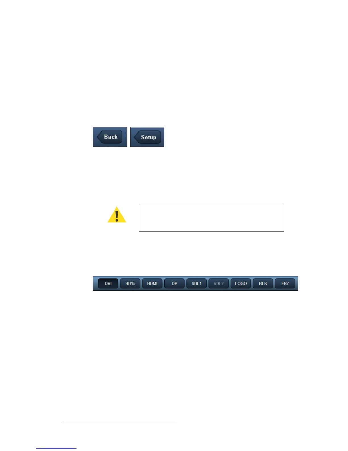 front panel. Click a button to switch inputs, freeze the image, or transition to a logo or