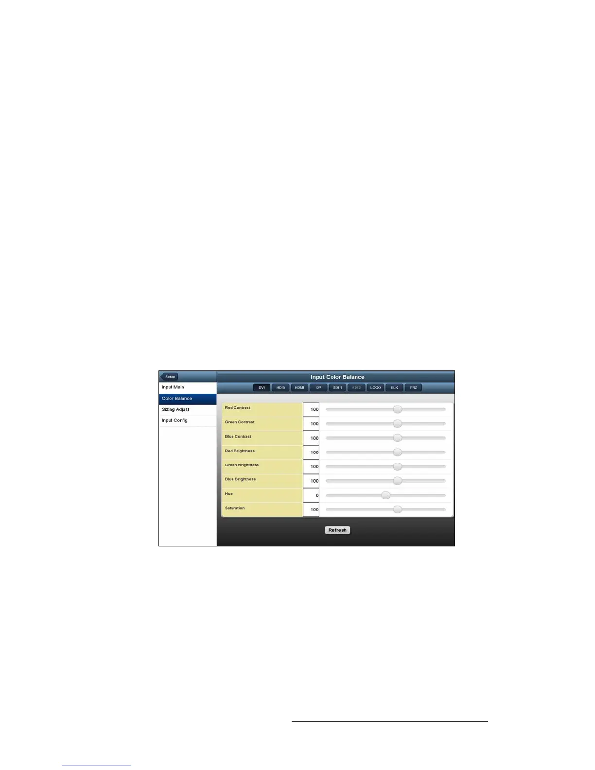 On the Input Main page, select Color Balance in the side menu. The Color Balance page