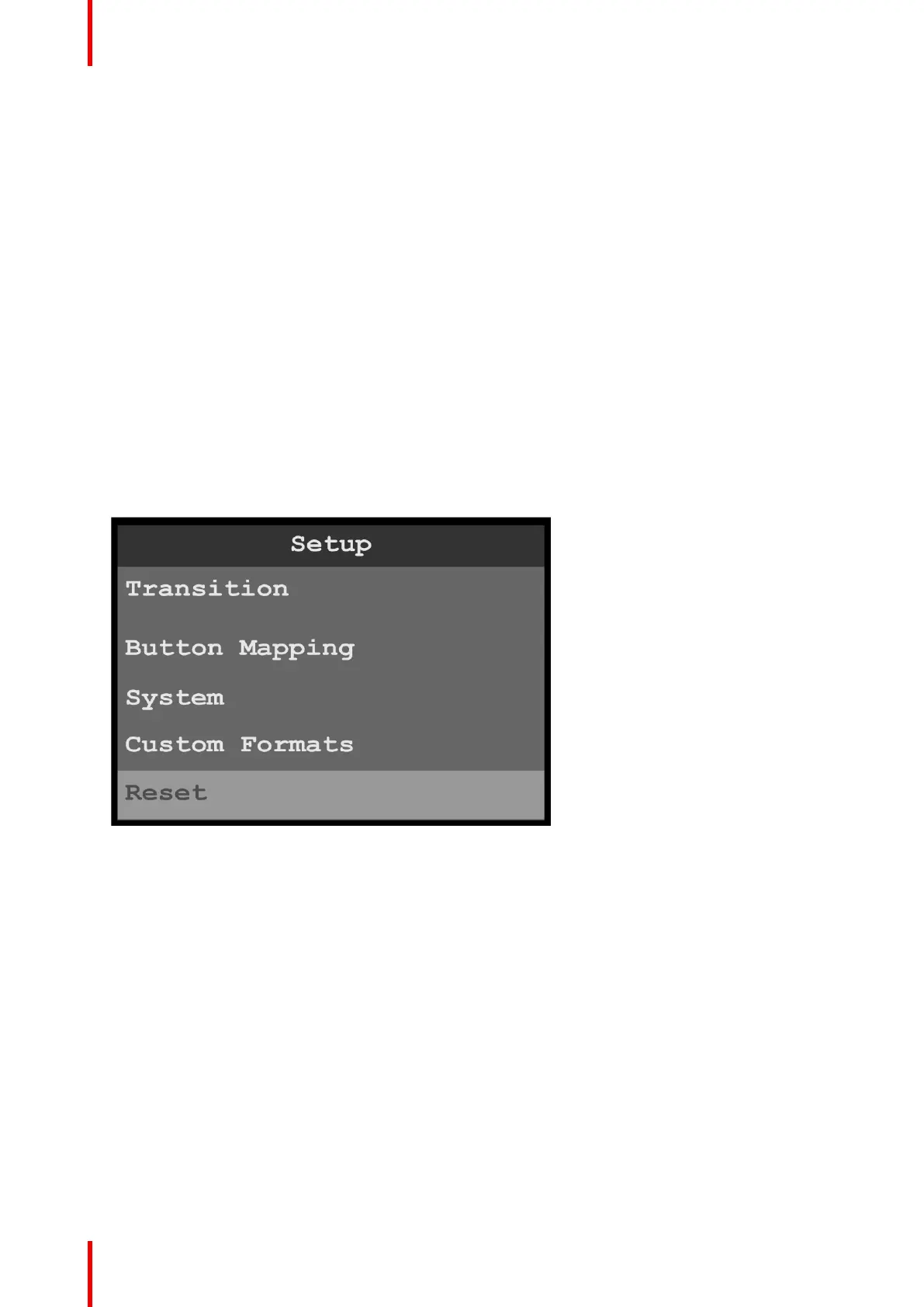 3. Refer to “Reset menu”, page 95 for instructions on using the Reset menu.