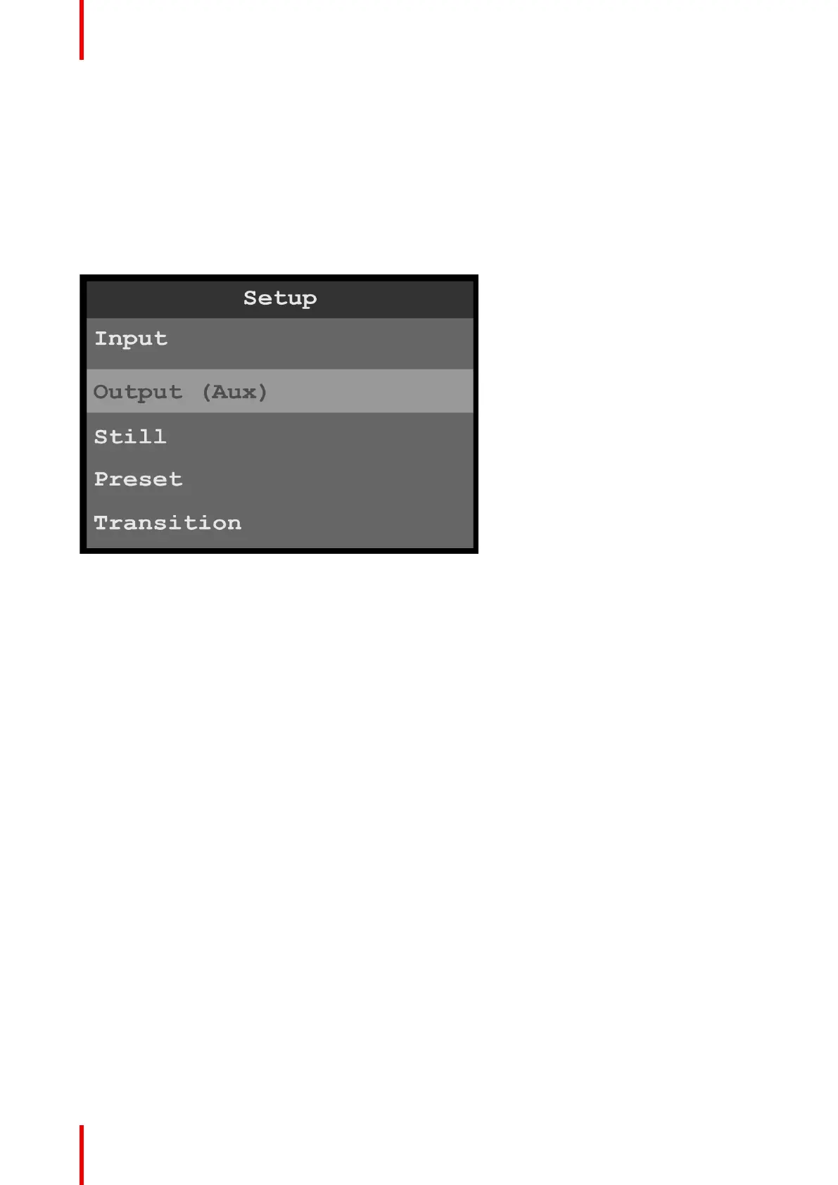 This section provides information about setting up and using outputs (Auxes). To enter the Output (Aux) menu
