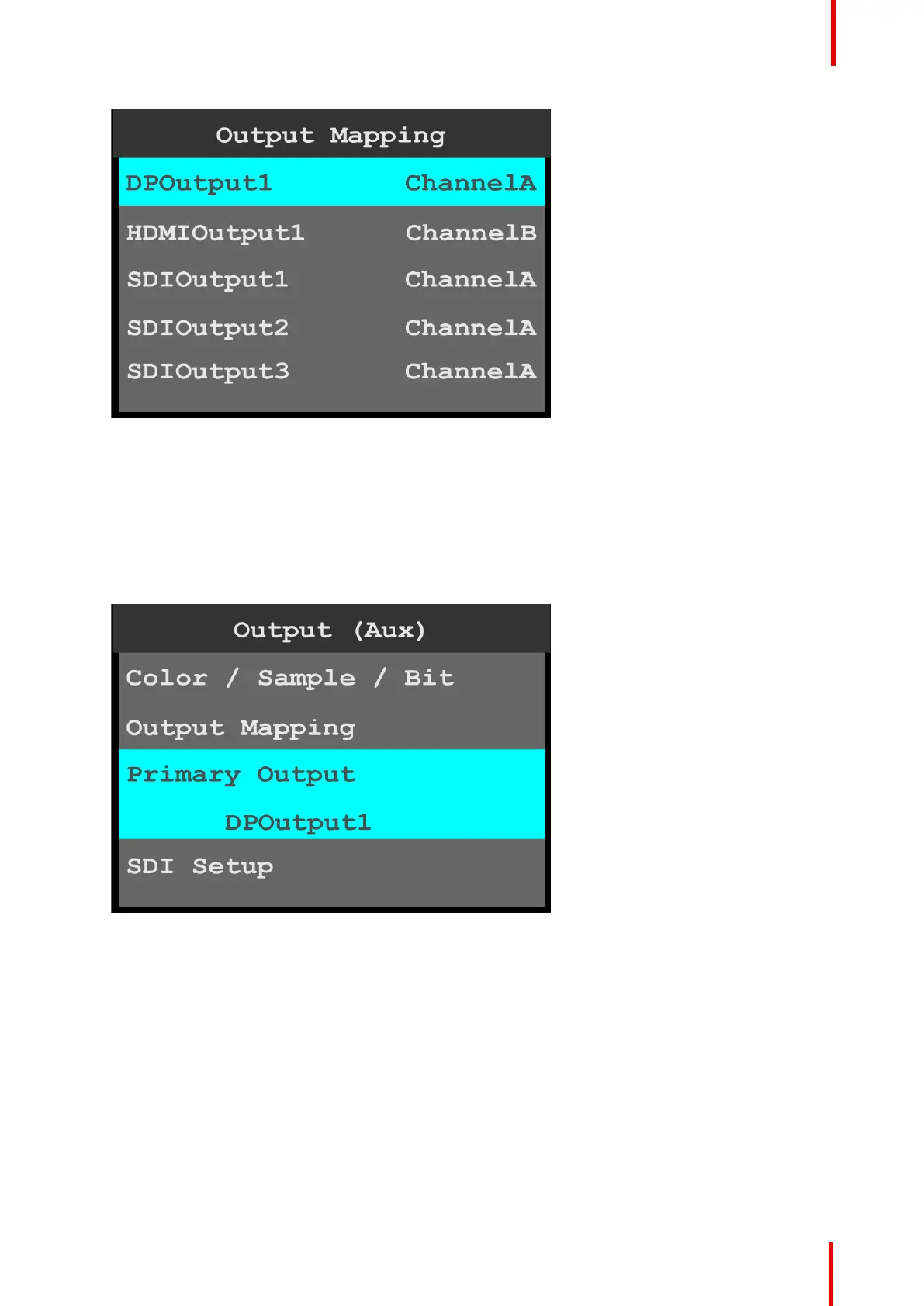 1. Scroll to and select SDI Setup on the Output (Aux) menu to set up the SDI outputs.