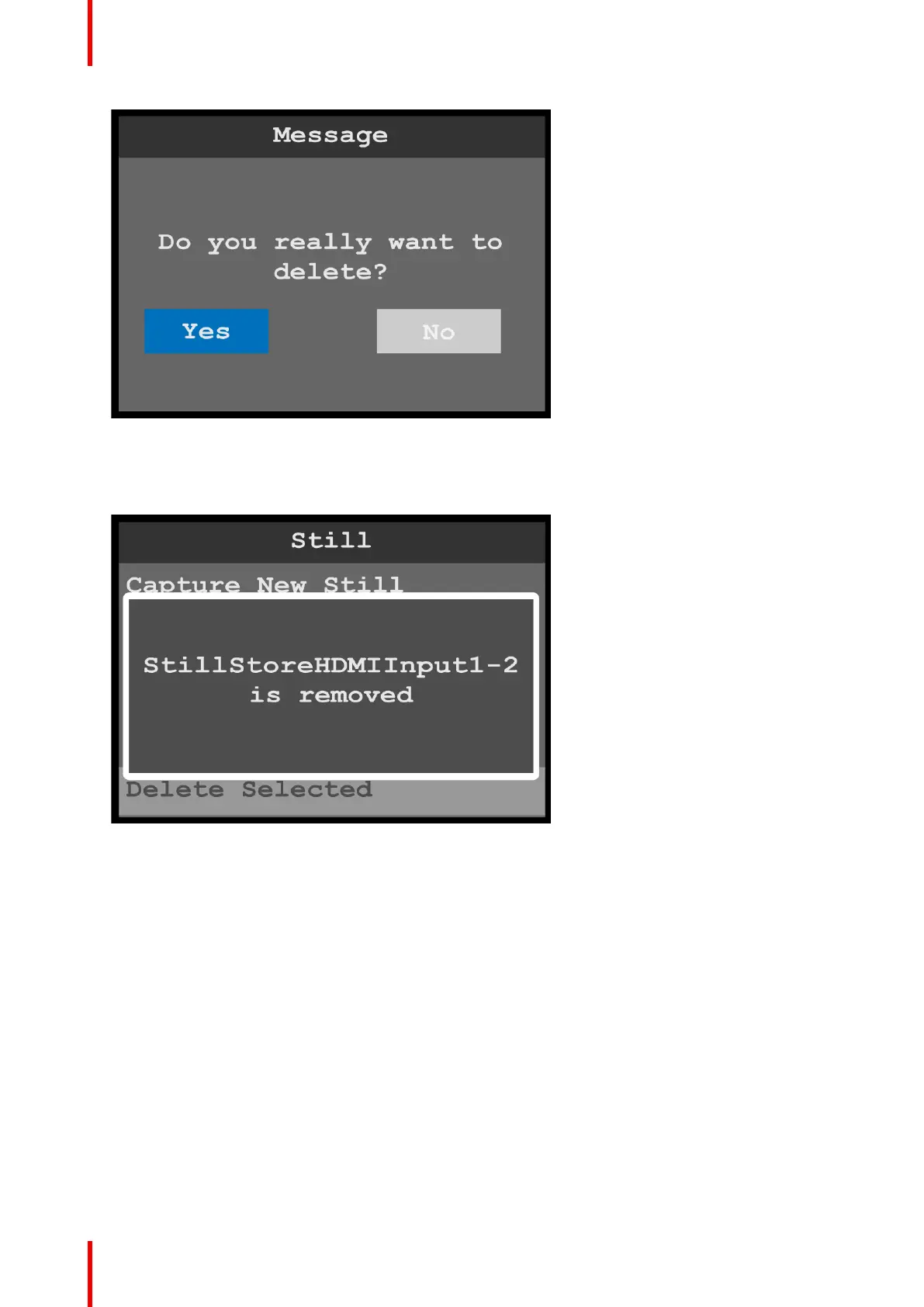 3. Select Yes to delete the selected still.