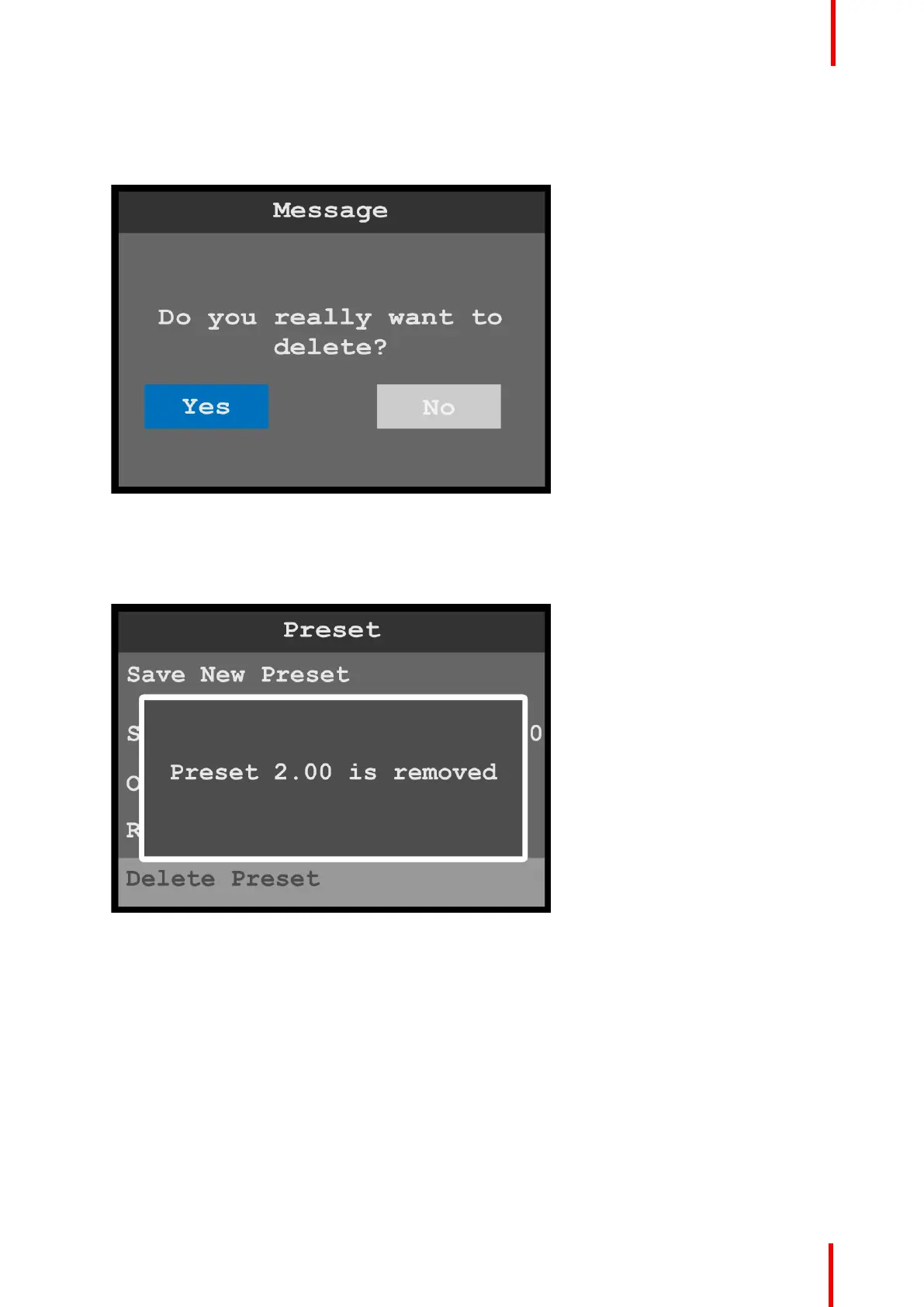 2. Select Yes to delete the selected preset.