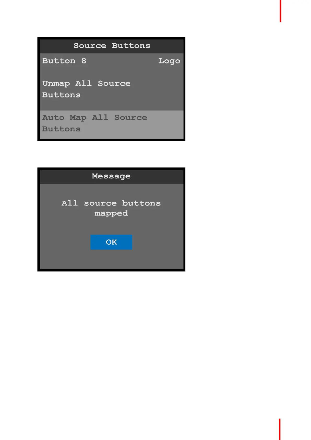Image 6-52: All source buttons mapped message