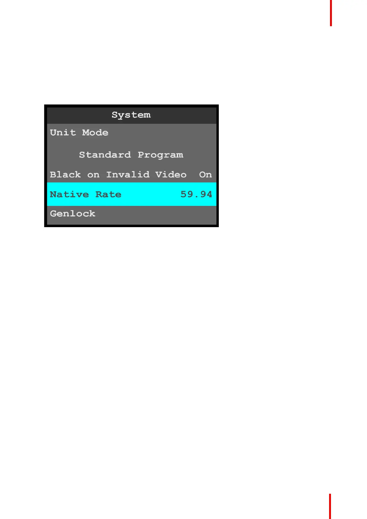 Image 6-68: System menu: Native Rate