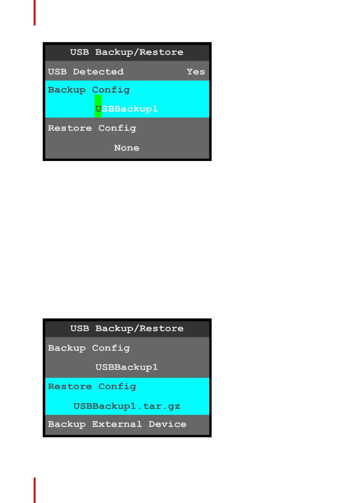 2. Use the adjust knob to scroll through and select the desired backup config file.