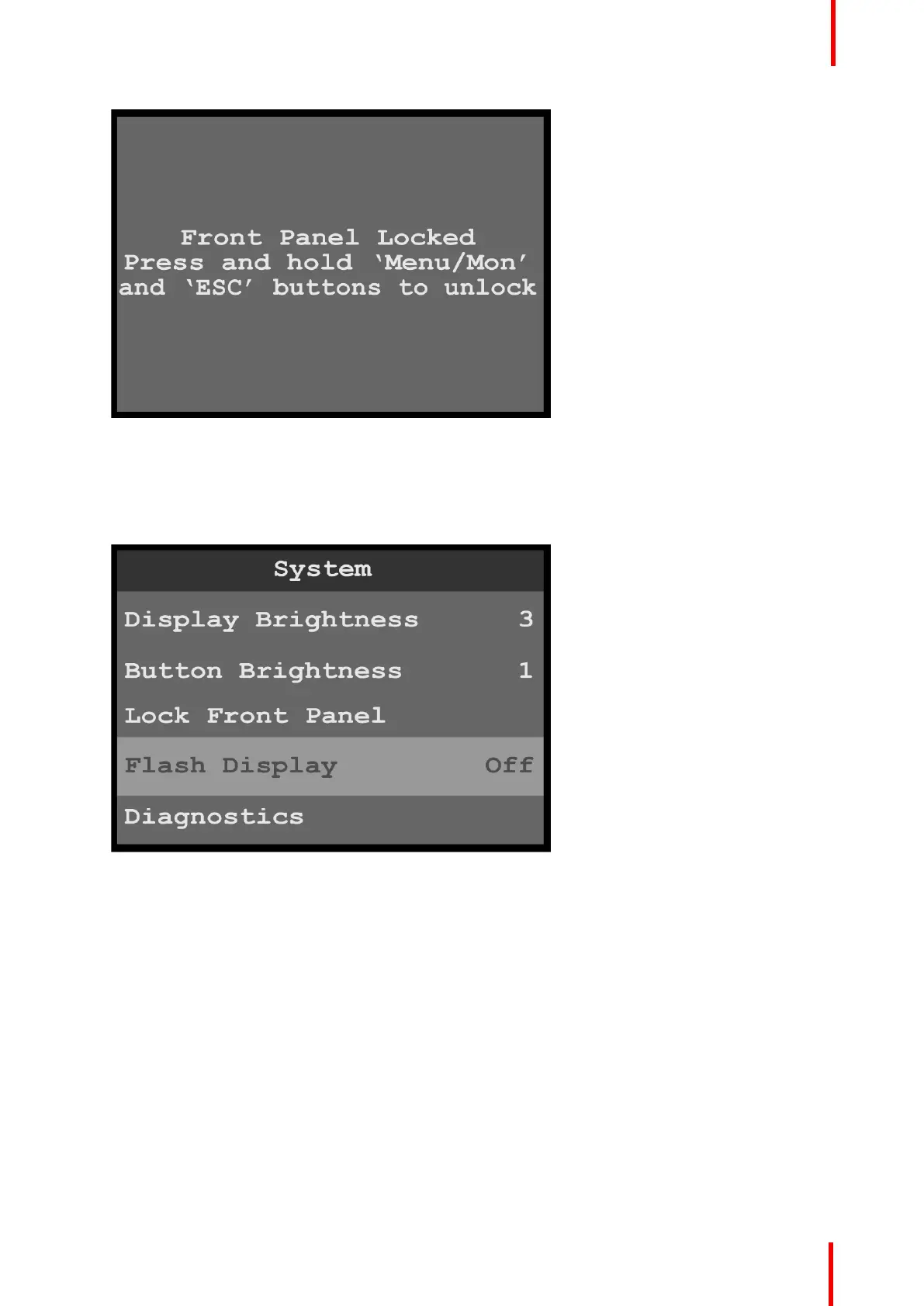 2. Press and hold the MENU/MON and ESC menu keys to unlock the front-panel buttons.