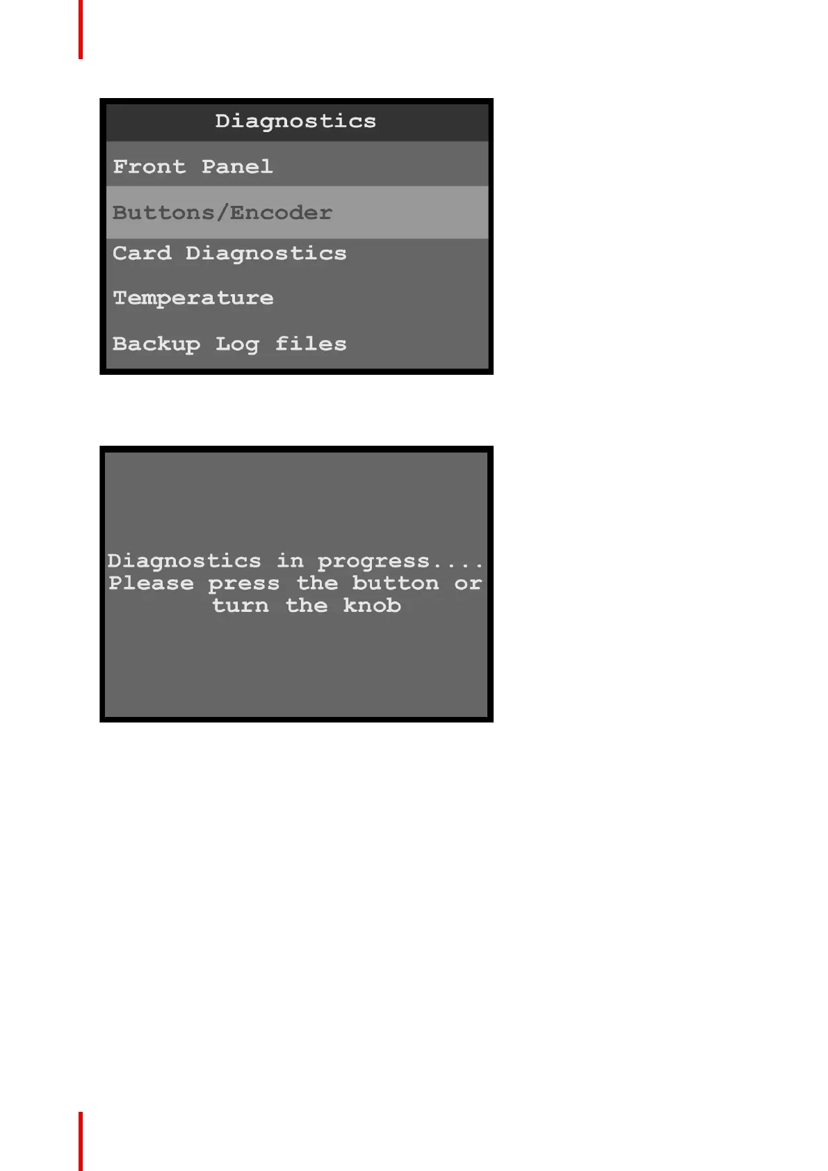 When Buttons/Encoder is selected, the system displays the message “Diagnostics in progress…Please
