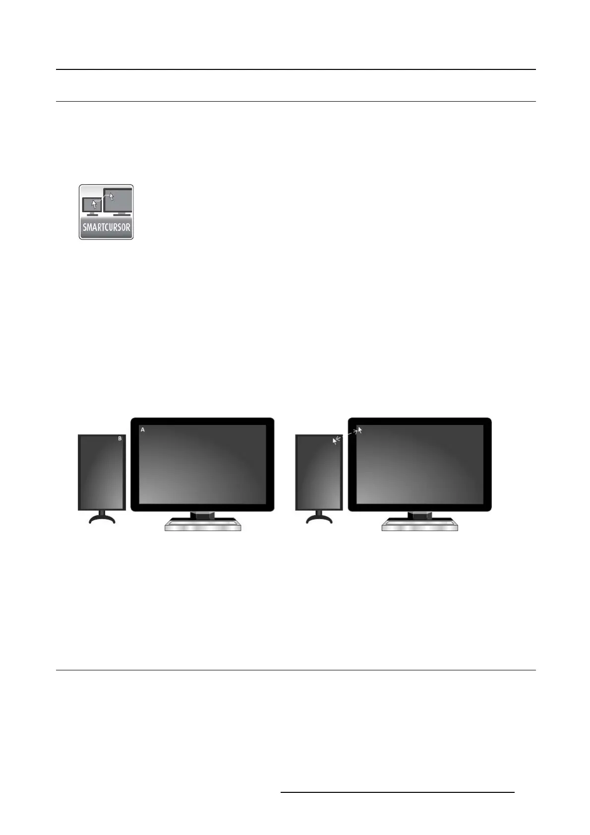 Consider two points, A and B, on two displays of different sizes. Without SmartCursor, the cursor cannot